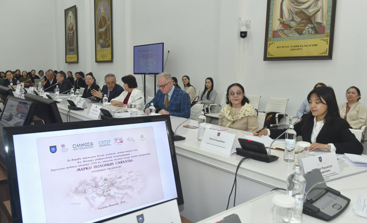 Әл-Фараби атындағы ҚазҰУ-да Ка’Фоскари университеті ғалымдарының қатысуымен ортағасырлық итальян тілінен қазақ тіліне тікелей аударылған «Марко Полоның саяхаты» кітабының тұсаукесері өтті.