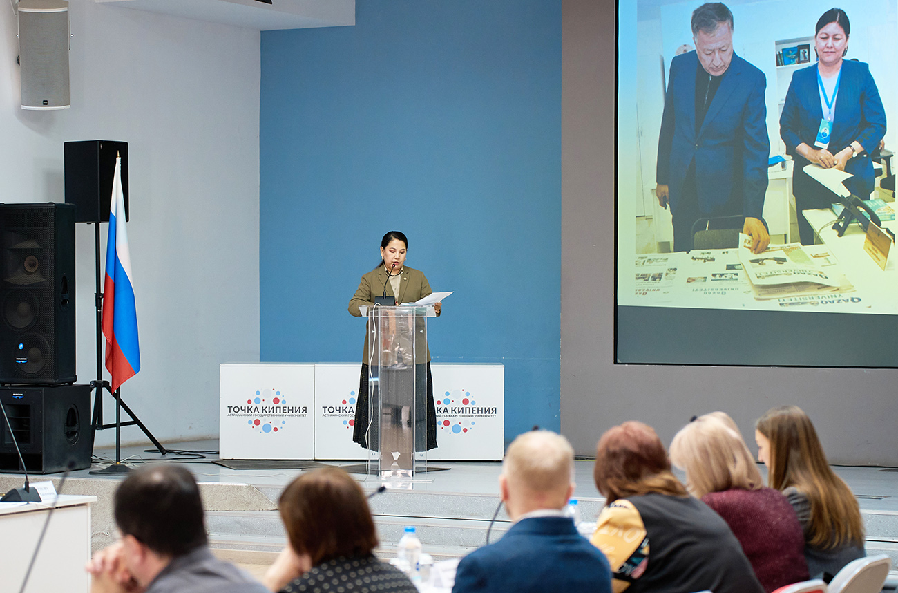 В рамках конференции академик Международной Евразийской академии телевидения и радио, профессор КазНУ Маншук Мукашeва выступила с докладом на тему «Особенности подготовки медиаспециалистов в системе высшего образования Казахстана», подчеркнув значимость образовательного сотрудничества между двумя государствами. В свою очередь заведующая кафедрой журналистики и медиакоммуникаций Астраханского государственного университета Галина Белолипская представила современные модели медиаобразования.