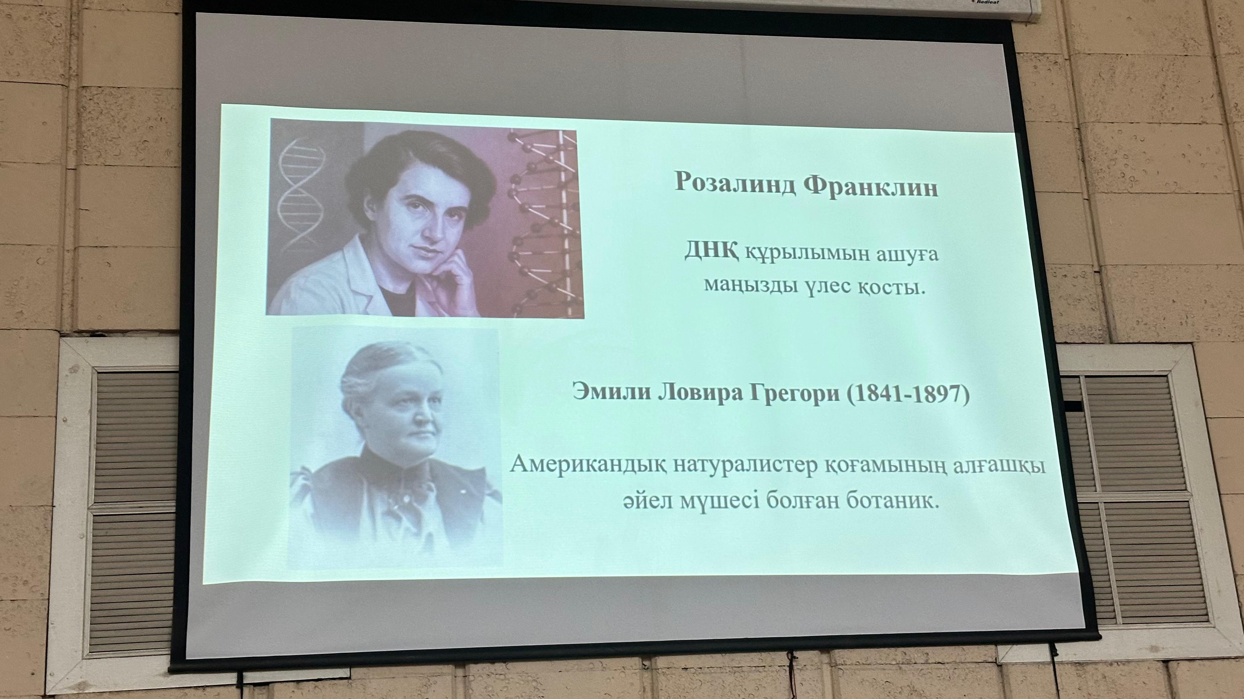 2026 жылдың 16 ақпанында Әл-Фараби атындағы Қазақ ұлттық университетінің Биология және биотехнология факультеті 7М05101 – Биология білім беру бағдарламасының магистранты Турарова Еркежан Мурзабекқызы ББ23-09, ББ23-08, ББ25-11 және ББ25-18 топтарының студенттеріне Ғылымдағы әйелдер мен қыздардың халықаралық күніне орай тәрбие сағаты ұйымдастырды.