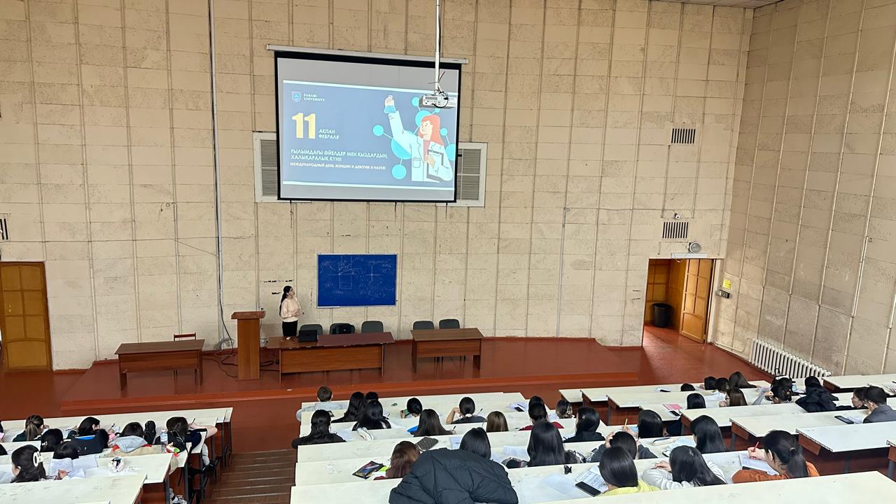 16 февраля 2026 года магистрант образовательной программы 7М05101 – Биология факультета биологии и биотехнологии Казахский национальный университет имени аль-Фараби Турарова Еркежан Мурзабеккызы организовала воспитательный час, посвящённый Международному дню женщин и девочек в науке, для студентов групп ББ23-09, ББ23-08, ББ25-11 и ББ25-18.