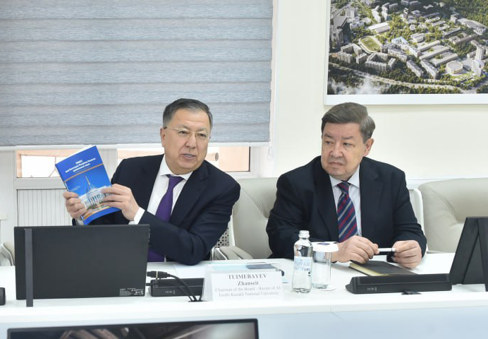 Оқу ордасының басшысы Жансейіт Түймебаев қонақтарға ҚазҰУ-да іске асырылып жатқан жұмыстар жөнінде ақпарат беріп, алдағы жоспарымен бөлісті. Сонымен қатар академиялық ұтқырлықты арттыру, шетелдік жоғары оқу орындарымен қос дипломды білім беру бағдарламаларын жүзеге асыру, жас ғалымдарды қолдау және стартап жобаларды дамыту мәселелеріне тоқталды.