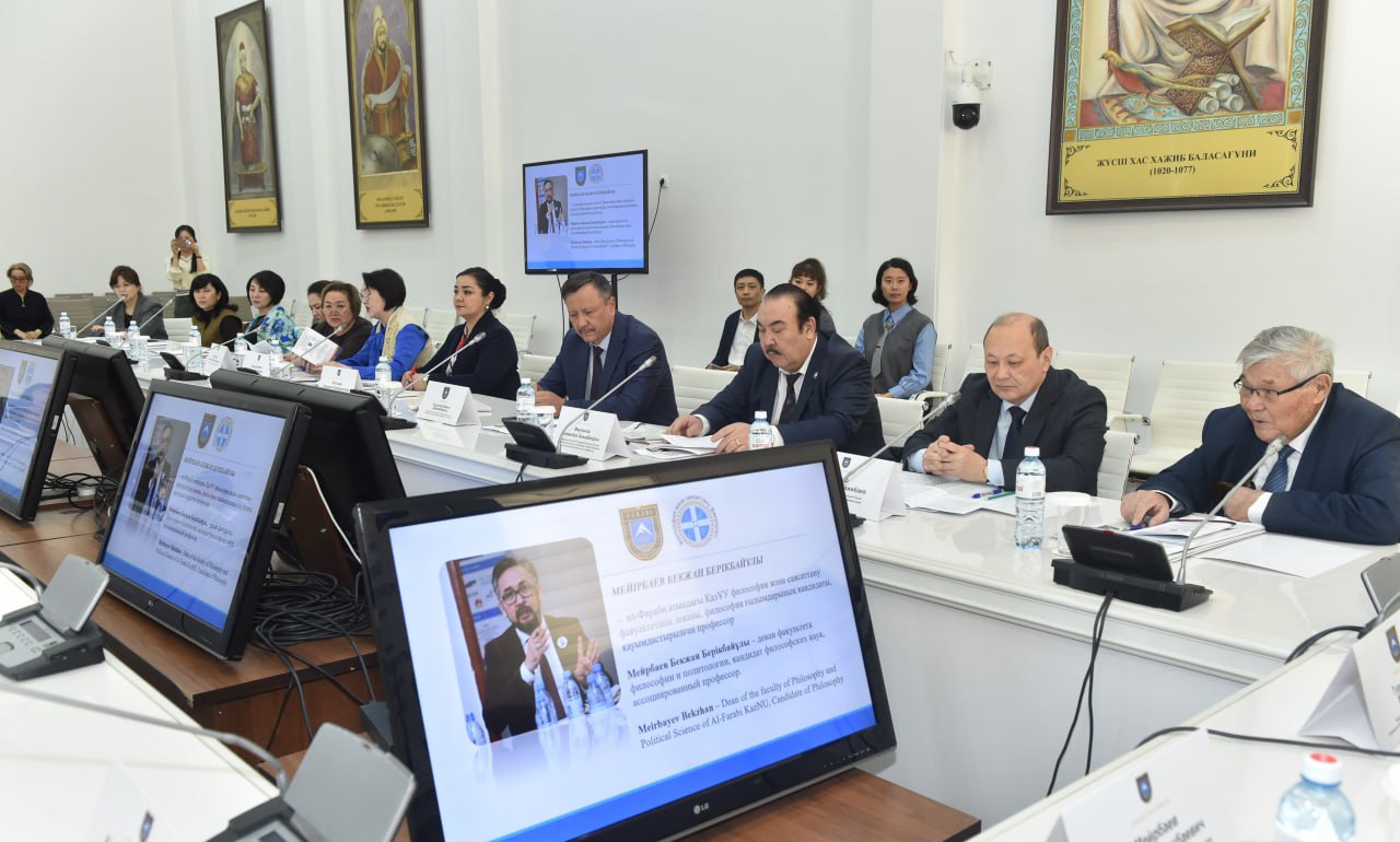 На открытии конференции специальное поздравительное письмо Председателя Правления – Ректора КазНУ Жансеита Туймебаева зачитал декан факультета философии и политологии Бекжан Меирбаев.