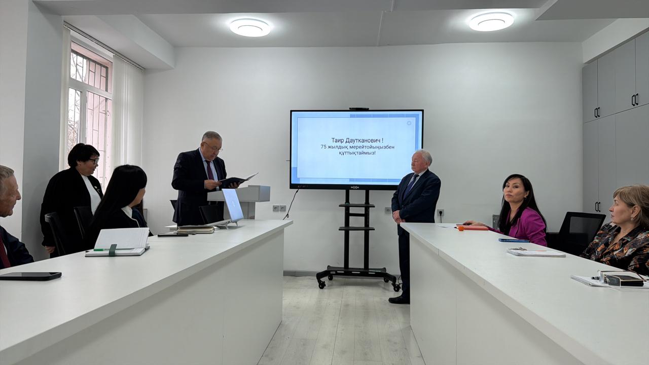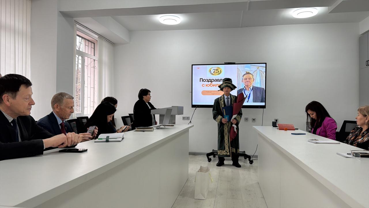 On February 24, 2026, a meeting of the Academic Council of the Faculty of Geography and Environmental Sciences at Al-Farabi Kazakh National University was held. The meeting began in a solemn atmosphere with congratulations to distinguished professors of the faculty on the occasion of their 75th anniversaries. The faculty expressed deep appreciation to Doctor of Geographical Sciences, Associate Professor of the Department of Meteorology and Hydrology Yevgeny Alexandrovich Talanov, and Candidate of Technical Sciences, Associate Professor of the Department of Geography, Land Management and Cadastre Tair Dautkanovich Dzhulamanov for their long-standing contributions to the development of science, the training of highly qualified specialists, and the formation of the faculty’s scientific schools.