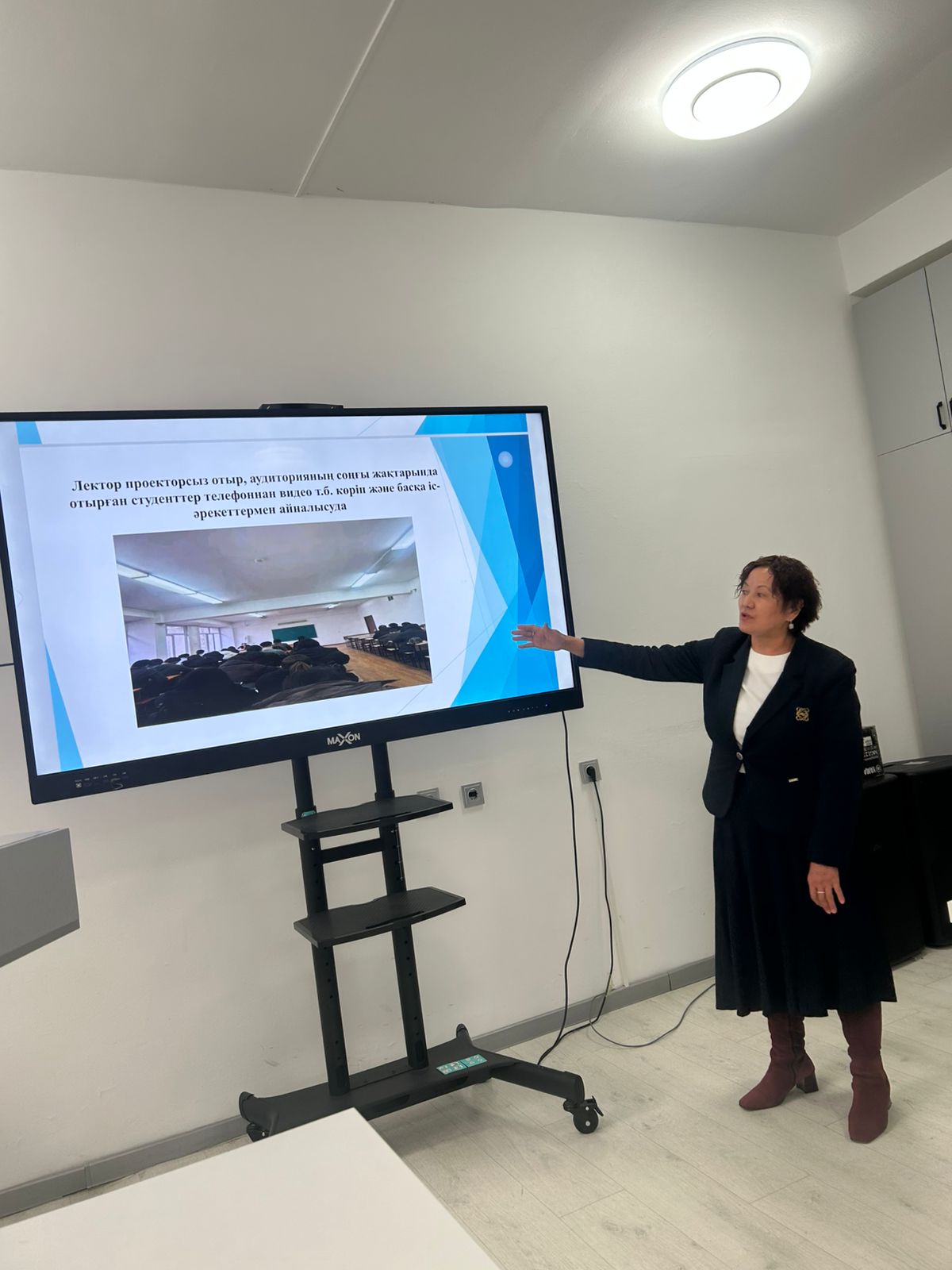 A report on the issues discussed at the University Academic Council and the Faculty Dean’s Office, as well as on the measures for their implementation, was delivered by the Dean of the Faculty, A.S. Aktymbayeva. In her speech, she outlined priority areas aimed at improving the quality of education, strengthening research performance, and expanding international cooperation. Within the agenda, the Dean presented comprehensive analytical materials on the results of the winter examination session of the 2025–2026 academic year, the implementation of the indicative plan for the first half of the year, and the strategic directions of the university’s research and innovation development.