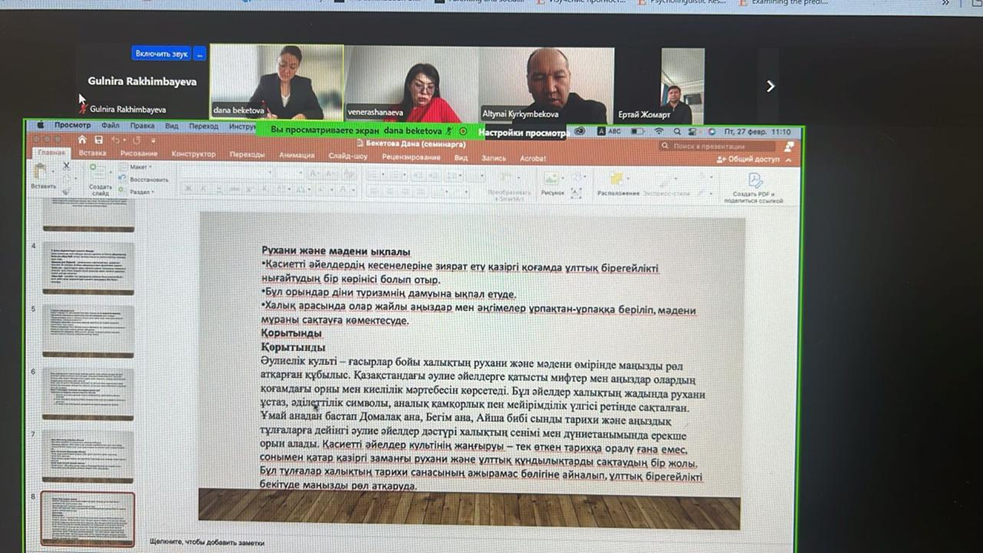 ТҮРІКТАНУ ЖӘНЕ ШЫҒЫС ЕЛДЕРІНІҢ ТАРИХЫ КАФЕДРАСЫНДА ОНЛАЙН ҒЫЛЫМИ СЕМИНАР ӨТТІ