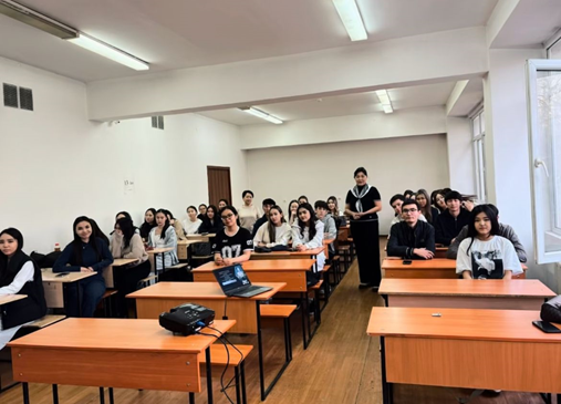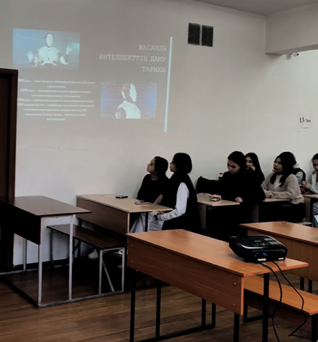 Іс-шара интерактивті талқылау форматында өтті. Студенттер баяндамалар жасап, өзара пікір алмасты және жасанды интеллект құралдарын практикалық қолдану мысалдарын көрсетті.