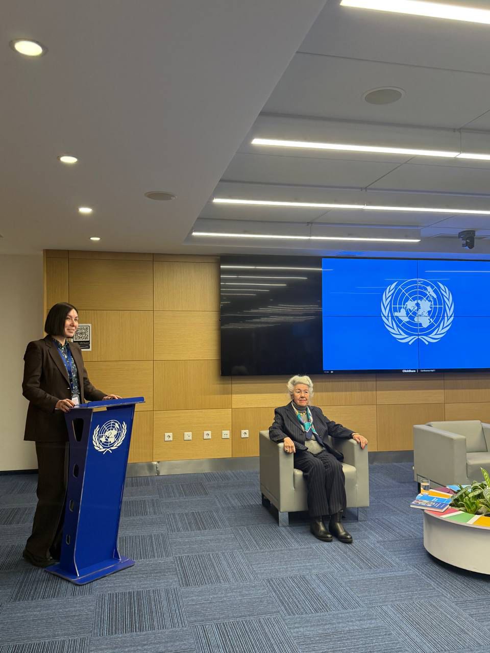 The meeting began with the screening of a video about the accession of the Republic of Kazakhstan to the United Nations, which was commented on by A.Kh. Arystanbekova.