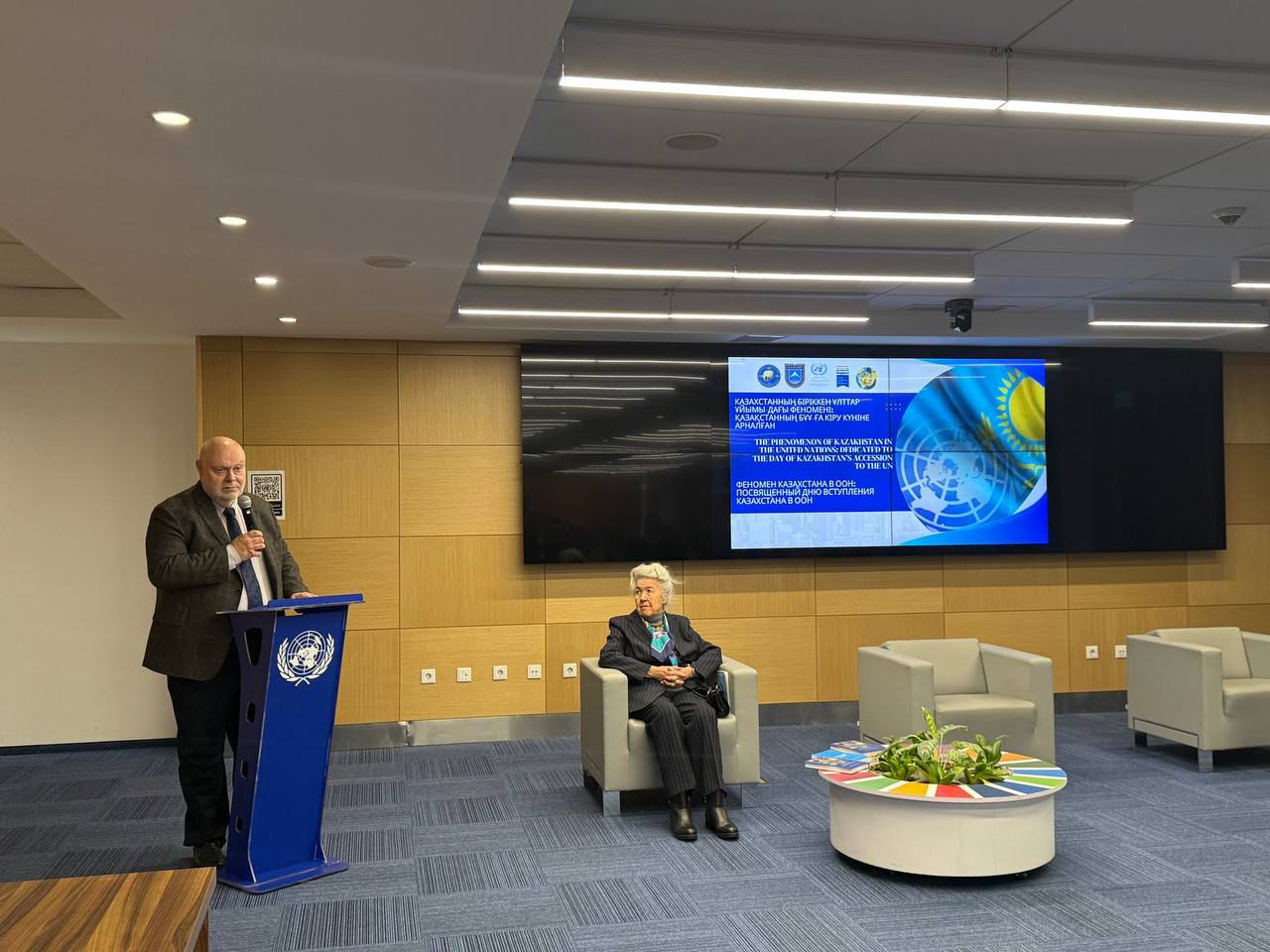 A welcoming speech was delivered by the representative of the United Nations Department of Global Communications in Almaty, Vlastimil Samek, who emphasized the role of the UN’s activities in Kazakhstan and Kazakhstan’s contribution to the work of the Organization. He also highlighted the long-standing contribution of Akmaral Arystanbekova to the development and strengthening of cooperation between Kazakhstan and the United Nations.
