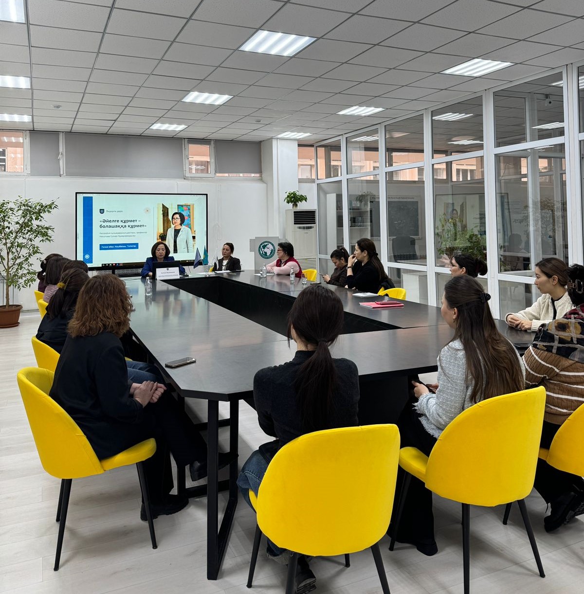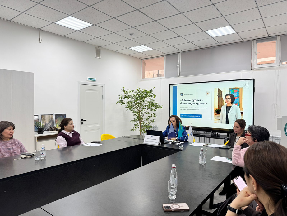 География ғылымдарының докторы, профессор Г.Н. Нюсупованың «Әйелге құрмет – болашаққа құрмет» тақырыбындағы, әйелдің ғылым мен қоғамдағы рөліне арналған лидерлік лекциясы өтті