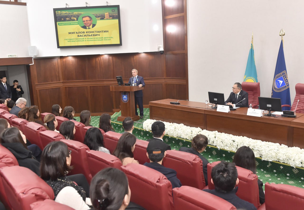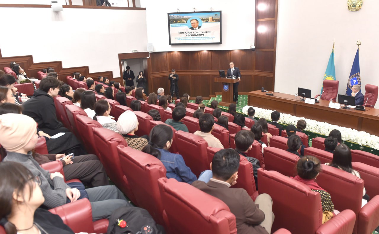 В Казахском национальном университете имени аль-Фараби состоялась встреча с государственным и общественным деятелем, известным дипломатом, чрезвычайным и полномочным послом Константином Жигаловым. Почетный гость, являющийся выпускником исторического факультета КазНУ 1981 года, выступил с лидерской лекцией перед профессорско-преподавательским составом и студентами.