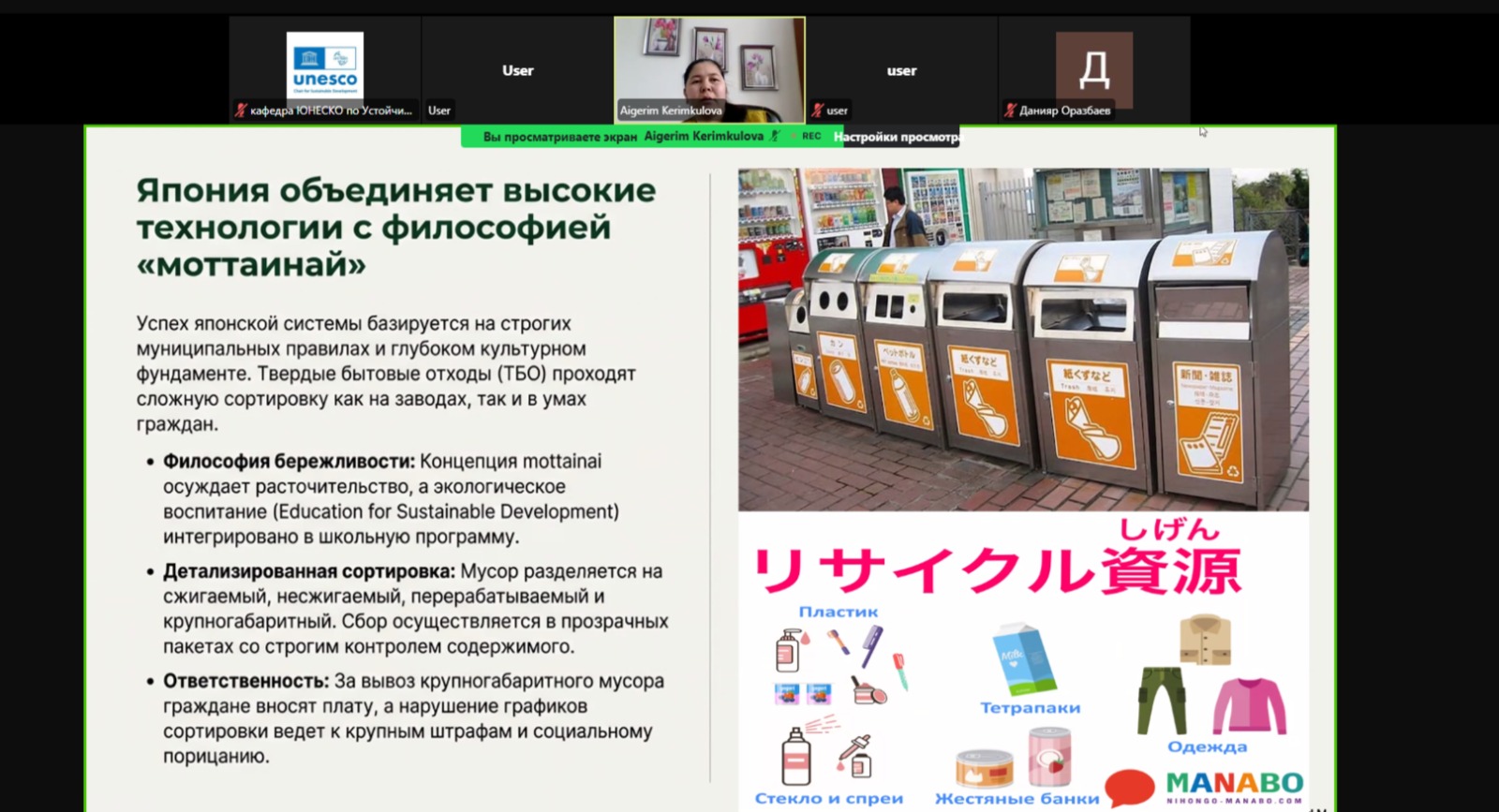 Аталған іс-шара тұрақты даму мақсаттарының бірі – ТДМ 12 «Жауапты тұтыну мен өндіріс» бағытын жүзеге асыруға және экологиялық мәдениетті қалыптастыруға бағытталған маңызды халықаралық білім беру алаңы болды.