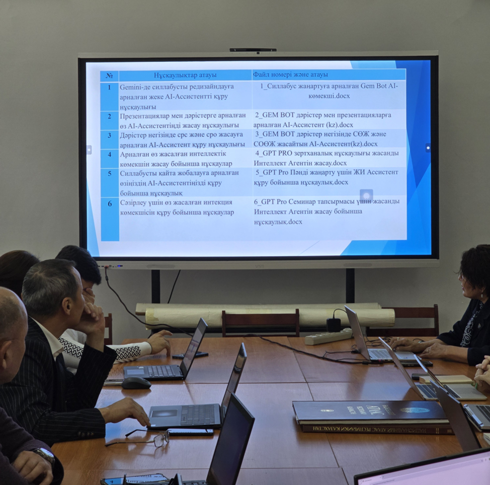 The master class speaker, O.Zh. Sagymbay, shared practical experience in applying AI tools in the development of educational and methodological complexes. It was also noted that GenAI tools facilitate the preparation of educational and methodological complexes; however, the final academic responsibility remains with the instructor.
