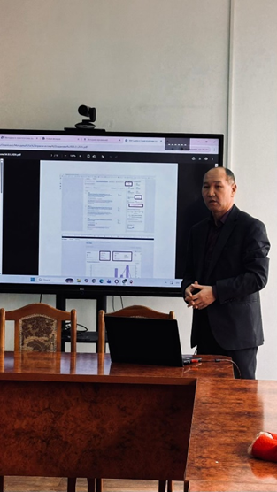 Кафедраның оқу-әдістемелік жұмыс жөніндегі меңгеруші орынбасары Ж.Аделбаев оқу үдерісін ұйымдастырудың маңызды бағыттарының бірі – Қорытынды бақылау нысандары мен платформаларын таңдау тақырыбында қорытынды бақылауды ұйымдастырудың әдістемелік талаптарын меңгеру, таңдалған бақылау нысаны мен платформа бойынша негізделген шешім қабылдау уралы баяндама жасады. Ол оқу үдерісін тиімді ұйымдастырудың ерекшеліктерін түсіндіріп, Шығыстану факультетінде білім алудың артықшылықтарына назар аударды