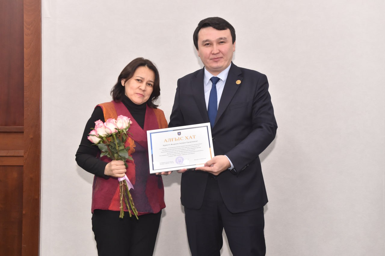Жиында Әл-Фараби атындағы ҚазҰУ Басқарма Төрағасы – Ректор Жансейіт Түймебаевтың атынан ҒЗИ қызметкерлеріне алғыс хаттар табысталды.