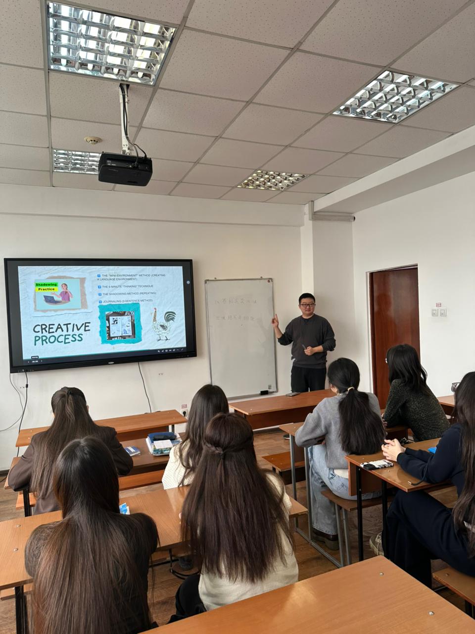Сабақ барысында қатысушылар өз тәжірибелерімен бөлісіп, тіл үйрену үдерісінде кездесетін қиындықтар мен жетістіктер жөнінде ойларын ортаға салды. Талқылау нәтижесінде қытай тілін меңгеру тек білім алу ғана емес, сонымен қатар болашақ кәсіби дамуға жасалған маңызды қадам екені атап өтілді.