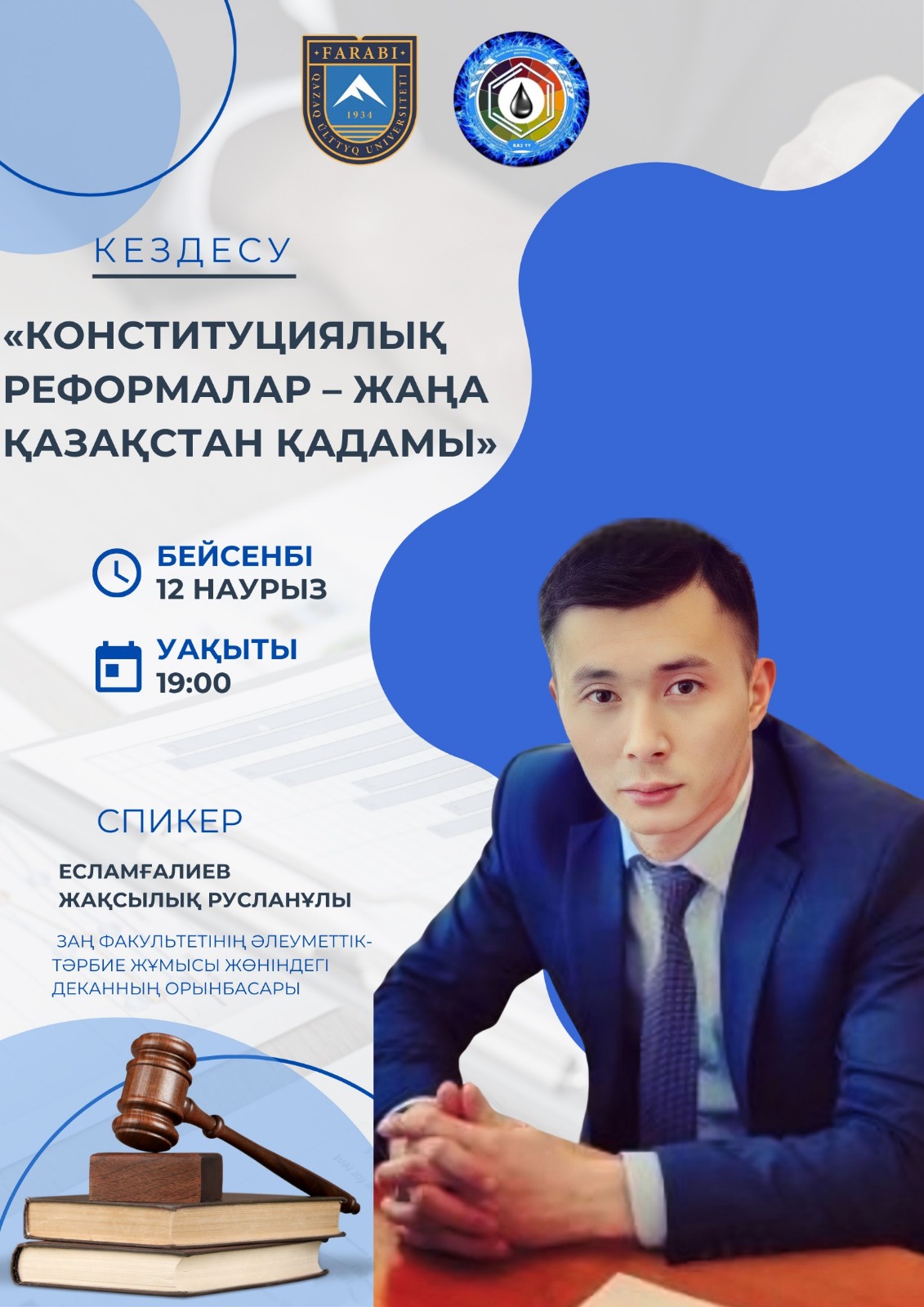 Встречу провёл заместитель декана юридического факультета по социально-воспитательной работе Есламгалиев Жаксылык Русланович. Он подробно рассказал студентам о понятии референдума, его правовых основах, порядке проведения, а также о праве граждан участвовать в референдуме. Кроме того, спикер отметил значение референдума в демократическом обществе и подчеркнул важность участия каждого гражданина в принятии решений, касающихся будущего страны.