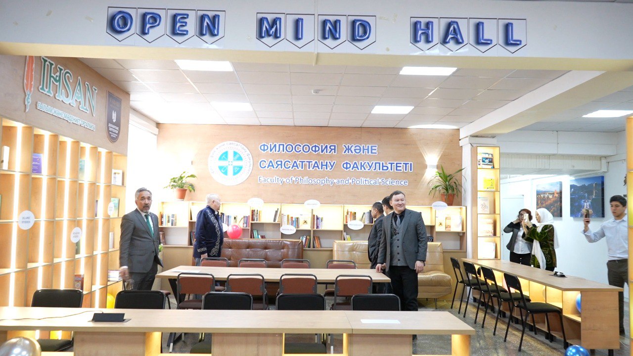 Әл-Фараби атындағы Қазақ ұлттық университетінің философия және саясаттану факультетінде «Open Mind Hall» коворкинг алаңының салтанатты ашылу рәсімі өтті. Жаңа орталық студенттер мен жас ғалымдар үшін еркін ойлау, пәнаралық зерттеулер мен сындарлы диалог орталығын қалыптастыруға бағытталған.
