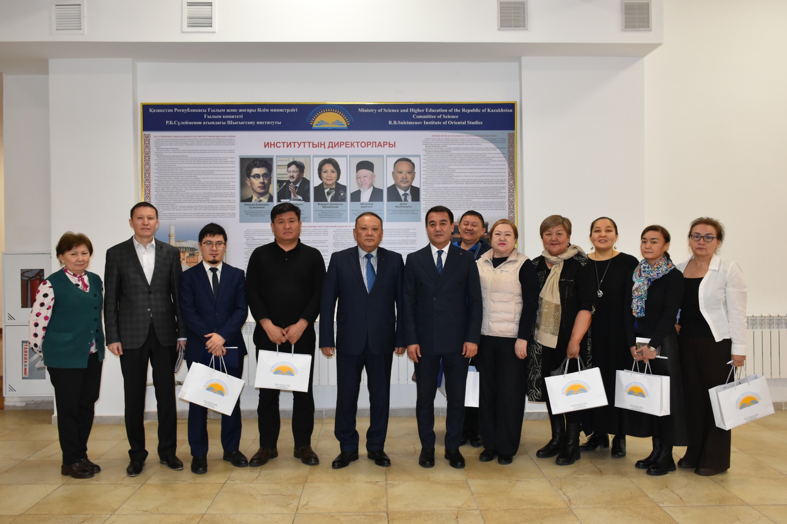 - From the Institute: Director of the Institute, Doctor of Philological Sciences, Professor D. Mäsimkhanuly; Deputy Directors; and heads of leading scientific departments.