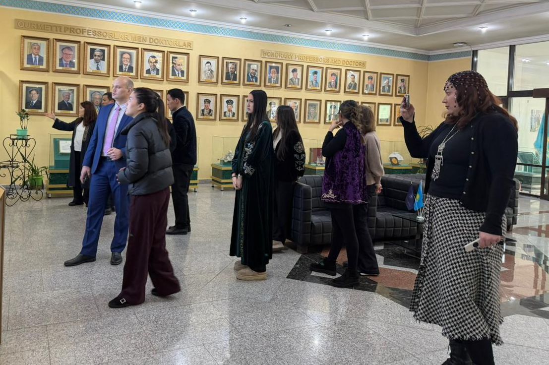 The guests explored the exhibition with great interest, viewing unique photographs, archival materials, and exhibits illustrating the university’s history. The delegation was particularly impressed by the famous exhibit – the Golden Man, a symbol of Kazakhstan’s cultural heritage. They also highlighted the importance of the Farabi Cultural Centers and their international network in promoting Kazakh culture abroad.