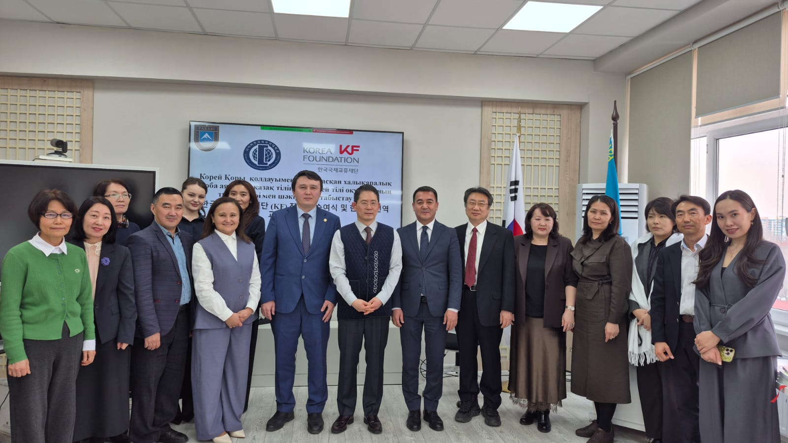 На факультете востоковедения КазНУ имени аль-Фараби состоялась торжественная презентация учебника корейского языка на казахском языке, разработанного в рамках международного проекта, а также цефремония вручения стипендий «Korea Foundation». В мероприятии приняли участие генеральный консул Республики Корея в Алматы Ха Тэ Ук, директор представительства «Korea Foundation» в Москве И Со Мен, профессор Киберуниверситета иностранных языков Хангук Джин Джон Ран, а также руководство вуза и ученые-корееведы.