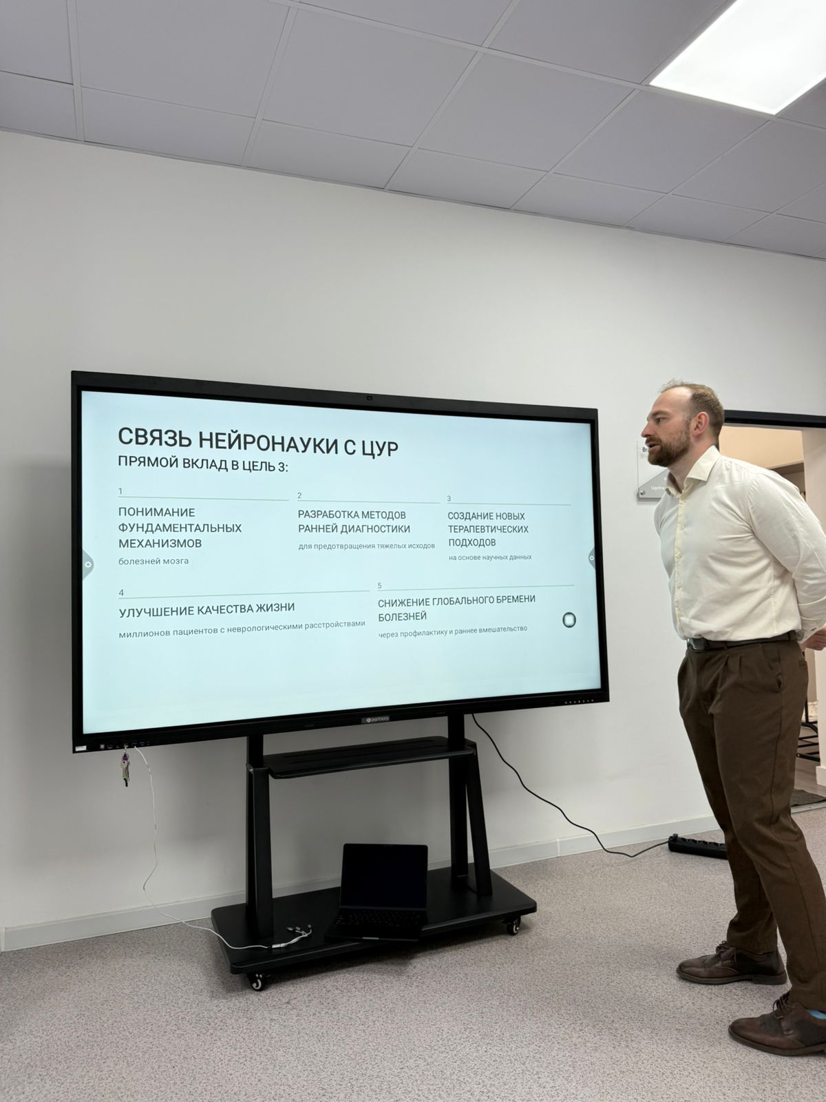 Мероприятие было направлено на популяризацию идей устойчивого развития в контексте охраны здоровья мозга, формирование у студентов представления о роли нейронауки в достижении ЦУР 3 и развитие научно-исследовательского мышления. В начале занятия участники познакомились с Повесткой дня в области устойчивого развития на период до 2030 года и 17 Целями устойчивого развития, после чего особое внимание было уделено Цели 3, направленной на обеспечение здоровой жизни и содействие благополучию для всех в любом возрасте.