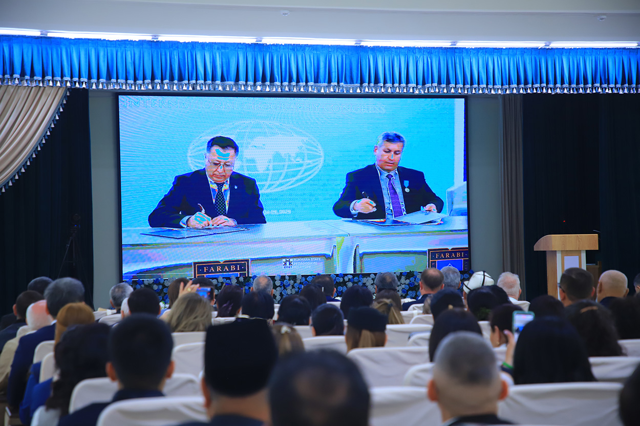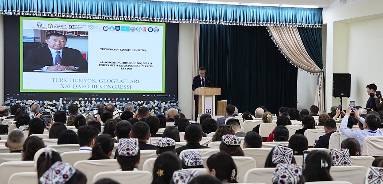 Өз кезегінде ҚазҰУ ректоры Жансейіт Түймебаев баяндама жасап, 2025 жылы Түркі әлемі географтарының II конгресі Әл-Фараби атындағы Қазақ ұлттық университетінде ұйымдастырылғанын жеткізді. Оған түркі елдерінен келген 150-ден астам ғалым жиналған еді.