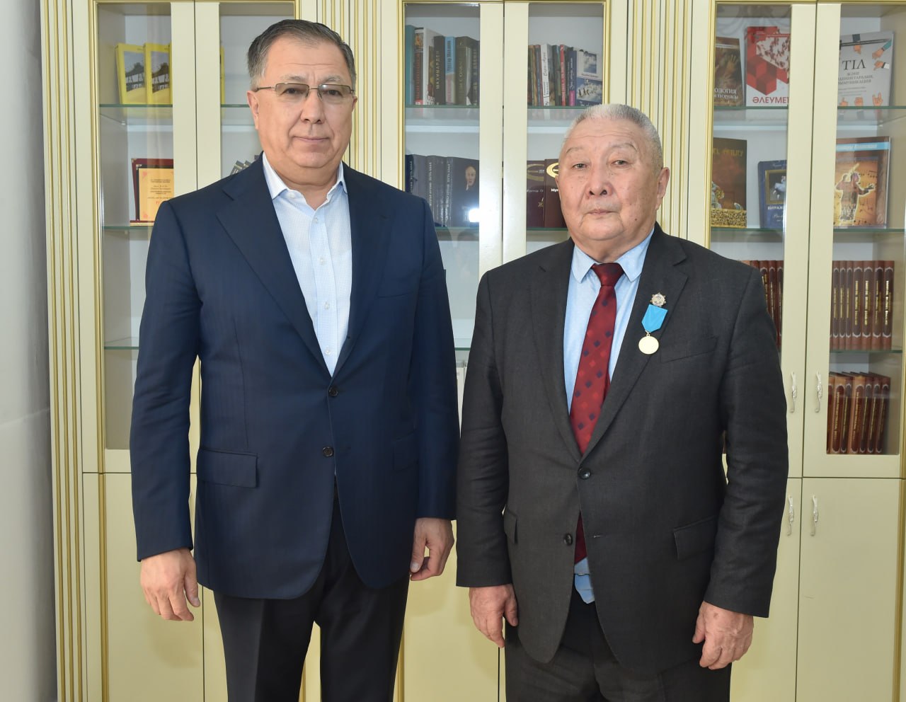 Жиын алдында Әл-Фараби атындағы ҚазҰУ Басқарма Төрағасы – Ректор Жансейіт Түймебаев белгілі ғалымды арнайы қабылдап, ілтипат білдірді. Кездесу барысында университет басшысы академиктің отандық археология мектебін қалыптастырудағы қажырлы еңбегі мен халықаралық ғылыми кеңістіктегі биік беделін ерекше атап өтті. Ғылым мен білім саласының дамуына, ұлттық тарихымызды түгендеуге қосқан елеулі үлесі үшін ректор Жансейіт Түймебаев академик Жәкен Таймағамбетовке университеттің «Farabi» алтын медалін ерекше құрметпен табыстады.