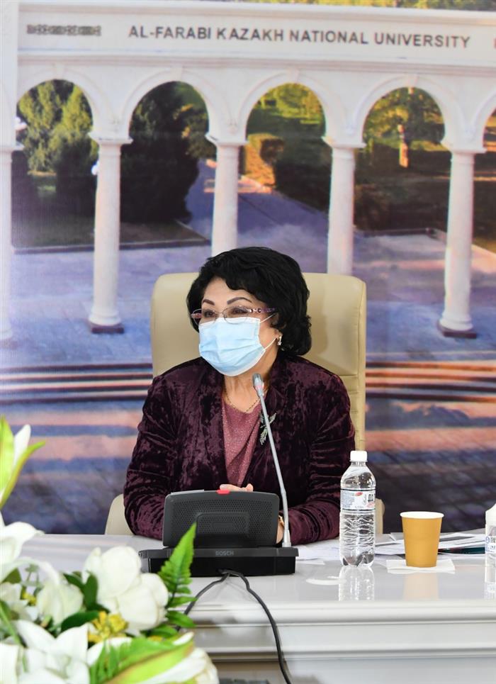 Ректор Казахского Национального университета имени Аль-Фараби, доктор филологических наук, профессор Жансеит Кансеитович Туймебаев в своем выступлении отметил усилия мирового сообщества и меры, предпринятые нашим государством по организации бесплатной вакцинации от коронавируса всех граждан страны. Ректор подчеркнул важность консолидации науки, практического здравоохранения и лабораторной службы.