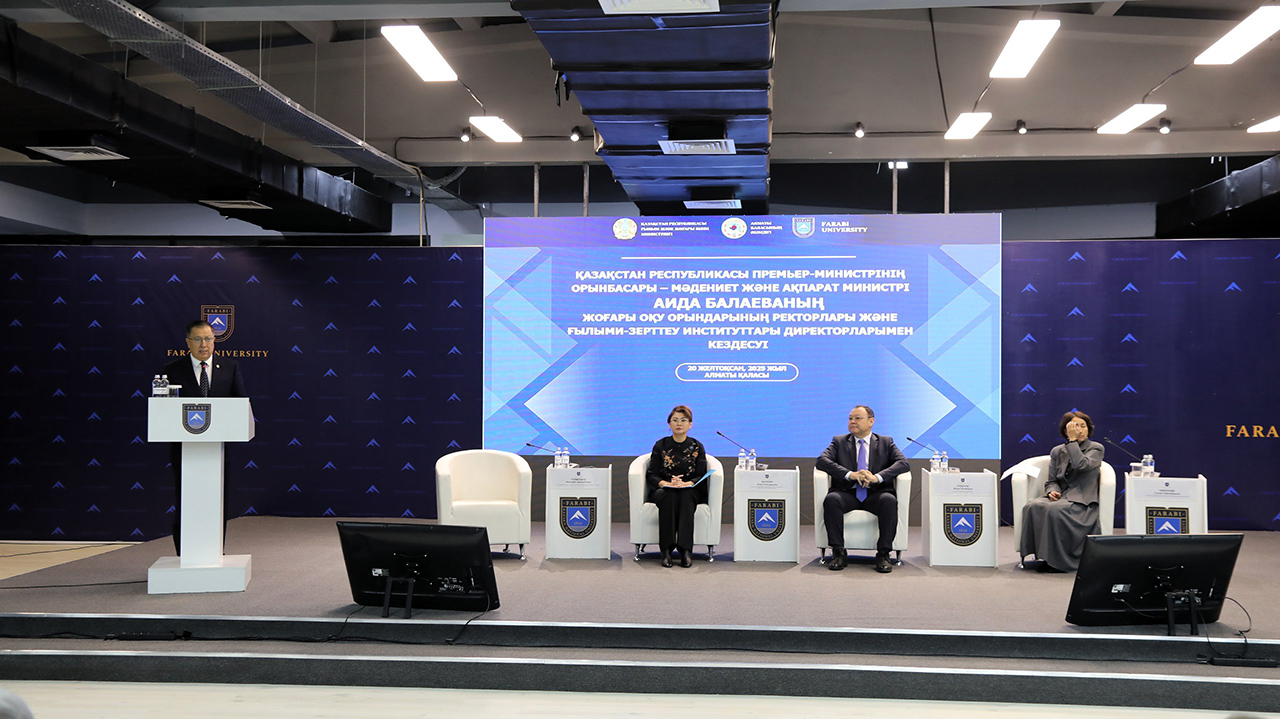 Мұражайдағы экскурсиядан соң қонақтар университет ректорымен кездесті. Бақытжан Жұмағұлов оларды өз университетінің тарихында ҚазҰУ-дың бірқатар студент ұрпағын тәрбиелеуде танытқан қажымас қайратпен, патриоттық сезімі үшін алғыс білдіріп, шын жүрекпен, ыстық ықыласпен қарсы алды. Ол сондай-ақ университтің дамуы мен перспективалары жөнінде баяндай келе, Елбасы дәрісінде ҚазҰУ-ды «жаңа Қазақстанның білімі мен ғылымының форпосты» дегенін айтты. Мұны ректор университет жетістіктері мен жеңістерінің ең жоғарғы бағасы деп есептейді.