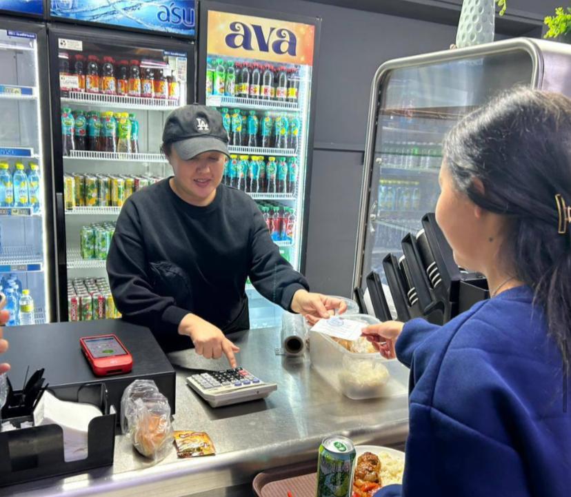 "Әл-Фараби" кітапханасы жанындағы асхана 2022 жылғы 21 ақпандағы № ҚР ДСМ-16 қоғамдық тамақтану объектілеріне санитарлық ережелерге сәйкес ет, сүт, сары май және өсімдік майы, қара бидай наны және т. б. кіретін студенттерге, профессорлық-оқытушылық құрамға және университет қызметкерлеріне диеталық тамақ беру бойынша қызметтер көрсетеді (немесе) бидай, көкөністер мен қант.