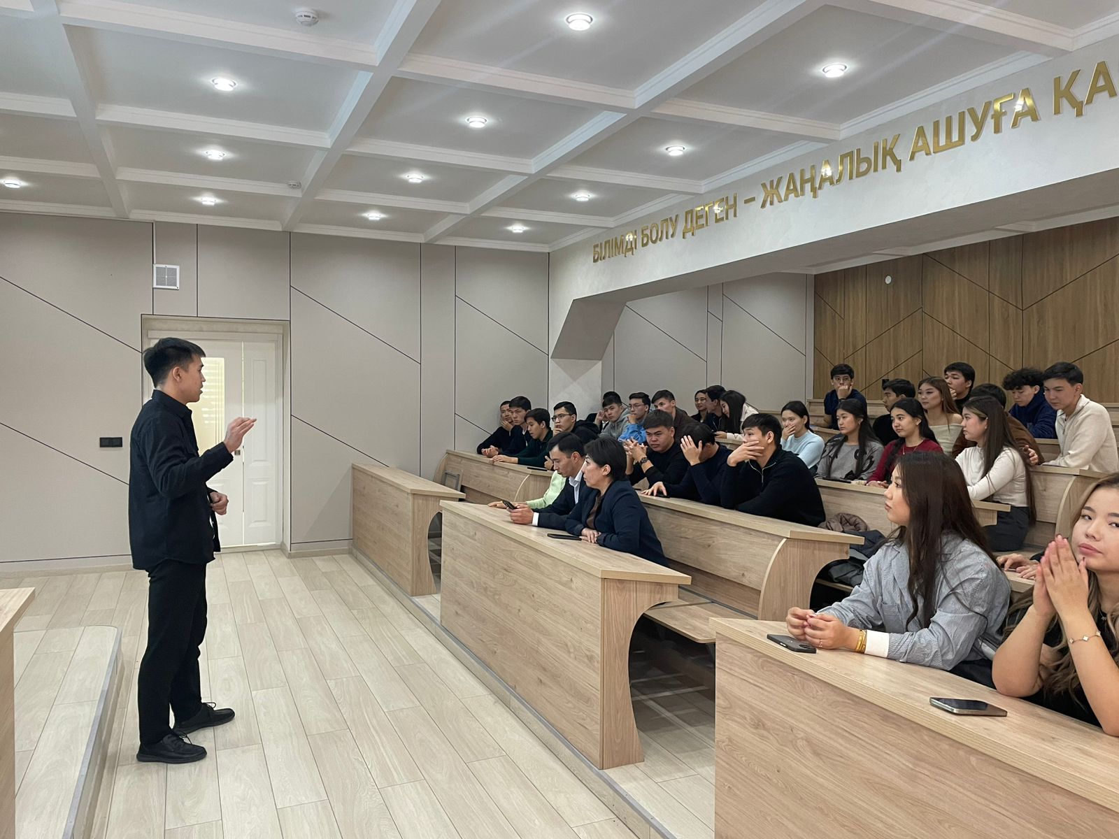 Beisenov B. I, a specialist of the Department for Combating Organized Crime, told the students about legal literacy and shared important data.