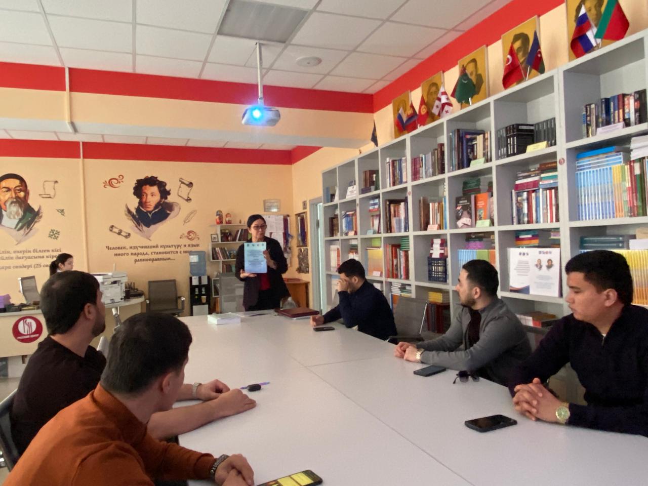 The event was also supported by Russian Cooperation Organization in Almaty. Associate Professors of Russian and General Linguistics Department of RUDN, Moskvicheva S.A and Smoliy E.S., the coordinator of the dual -degree program of the CIS SU, postgraduate student of the Institute of Russian Language and Literature of Udmurt State University, Ivanova S.S., Deputy Dean of the Faculty of Philology for Scientific and Innovative Work, Prof. Bayanbayeva Zh.A., the Head of the Department Doctor of Philosophy (PhD) Tattimbetova K.O., senior lecturer Jalamova Zh.B., the students of the Academy of Sports and Tourism, PhD students, master’s degree students and bachelor’s degree students of al-Farabi Kazakh National University took part in the event.