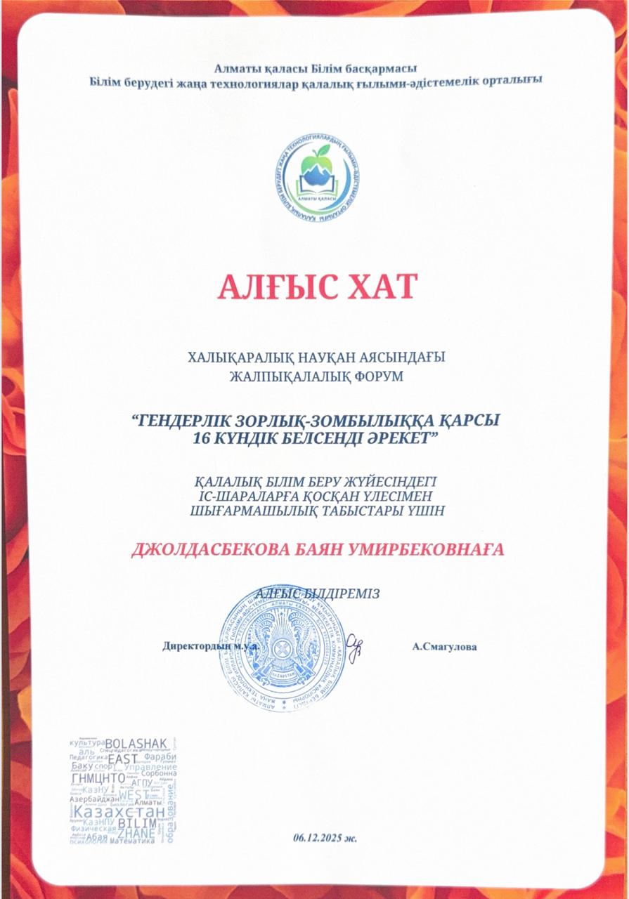 Бұл іс-шараның ТДМ 5. «Гендерлік теңдік» аясында жүргізіліп нәтижесінде студенттерді қазақ әдебиеті мен театр өнерінің үздік мұрасымен танысты, сахна өнерінің ұлттық мәдениеттегі рөлін түсінді және өздерінің мәдени танымдарын кеңейтуге мүмкіндік алды.