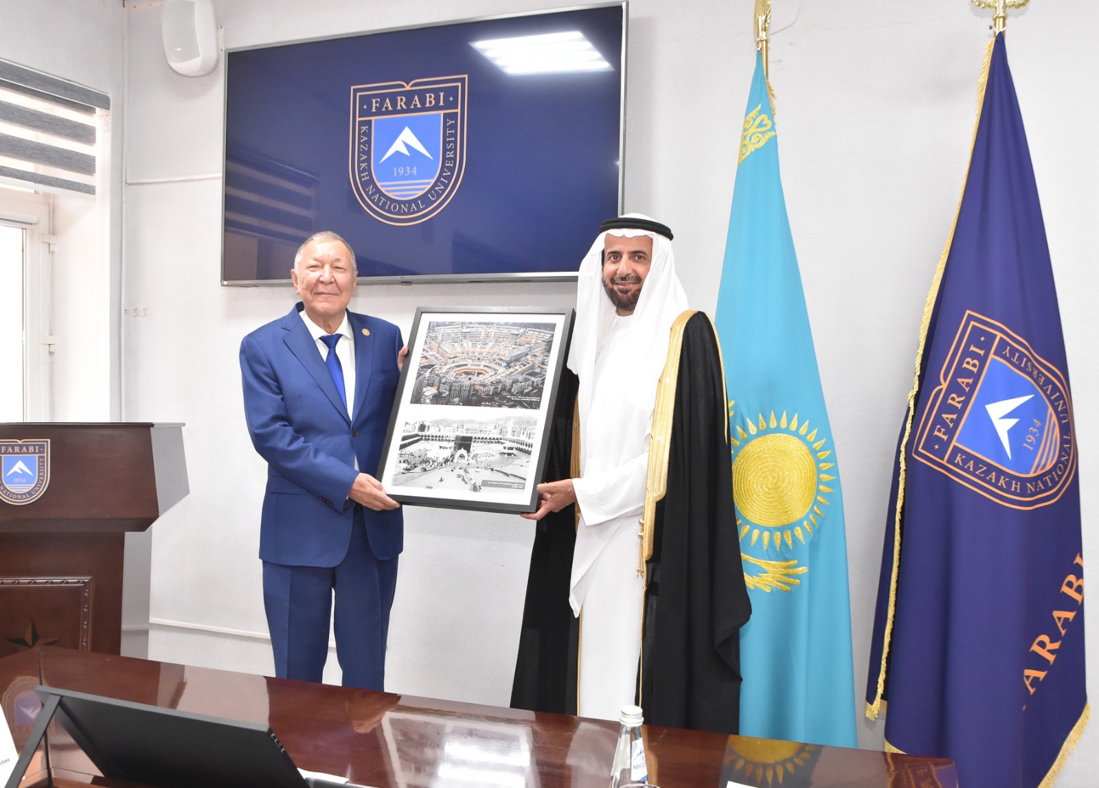 Сегодня министр Хаджа и Умры Королевства Саудовской Аравии Тауфиком Бен Фаузаном Бен Мухаммадом Ар-Рабиа посетил КазНУ имени аль-Фараби. Высокого гостя встретил Первый проректор университета Дуйсенов Е.. В рамках данного визита у преподавателей и студентов появилось возможность задать вопросы и получить ответы лично от министра КСА. Директор Центра арабистики Джубатова Б. поинтересовалась о роли университета в поддержке инициатив КСА в организации Хаджа и умры, о сотрудничестве в сфере наук и совместных научных проектов, на что министр выразил возможность поддержки Центра арабистики КазНУ и оказания поддержки в установлении контактов с аналогичными центрами КСА. Министр, отвечая на вопросы студентов арабского отделения, подчеркнул достаточно хороший уровень знания арабского у студентов факультета востоковедения и призвал их стремиться у цели, трудиться не покладая рук. Студентов интересовали такие вопросы, как личный опыт министра в достижении цели, успеха, его преподавательская деятельность, вызовы времени и пути их преодоления. Что касается возможности расширения сотрудничество с РК в сфере образования, высоком гостем отмечено, что КСА ежегодно выделяет свыше 100 грантов для студентов из РК для учебы в университетах КСА. Также докторантка факультета востоковедения, которая в этом году имела возможность совершить хадж в Мекке, поблагодарила министра за цифровые новшества в сфере предоставления услуг во время хаджа. Ведь такие платформы как "Нусук" значительно облегчают жизнь паломников. Министр заверил, что КСА расширяет сферу цифровых услуг и активно внедряют смарт-технологии. Ожидается, что данный визит станет основой длительного и плодотворного сотрудничества между КСА и РК в духовно-гуманитарной сфере. Встреча прошла в теплой дружественной обстановке.