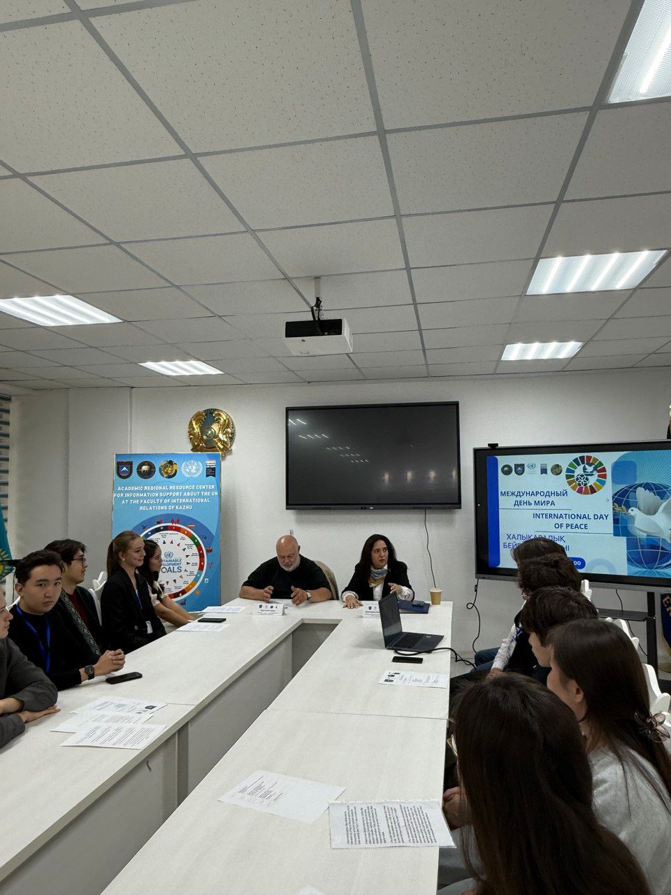2025 жылдың 19 қыркүйегі, жұма күні әл-Фараби атындағы ҚазҰУ халықаралық қатынастар факультеті жанындағы БҰҰ туралы ақпараттың академиялық өңірлік ресурстық орталығы Халықаралық бейбітшілік күніне арналған дөңгелек үстел ұйымдастырды.