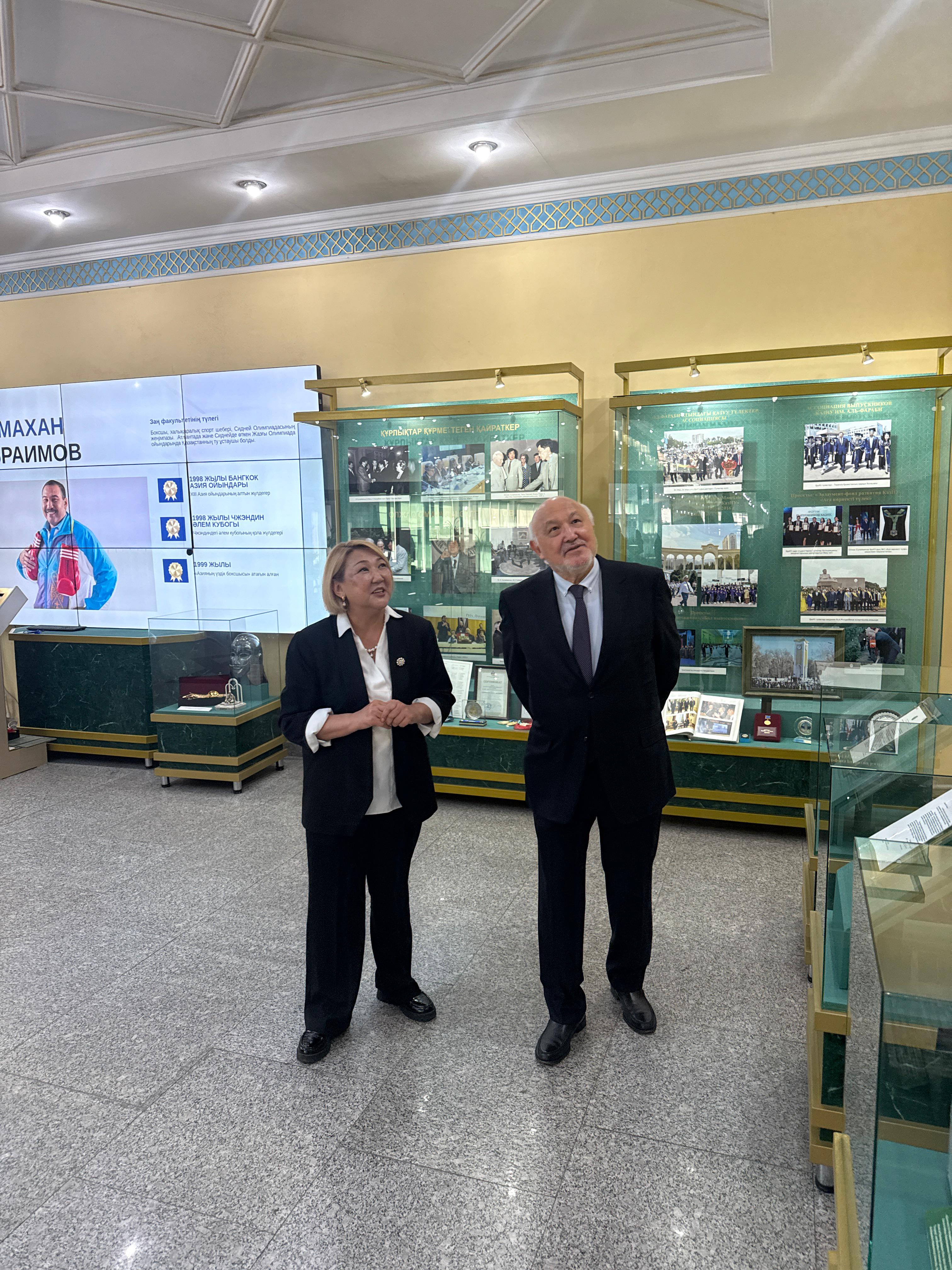 Во время экскурсии господин Кунаев подробно ознакомился с экспозицией музея, которая отражает ключевые этапы развития университета и его вклад в развитие науки и образования страны. Особое внимание было уделено уникальным историческим артефактам и документам, хранящимся в фондах музея.