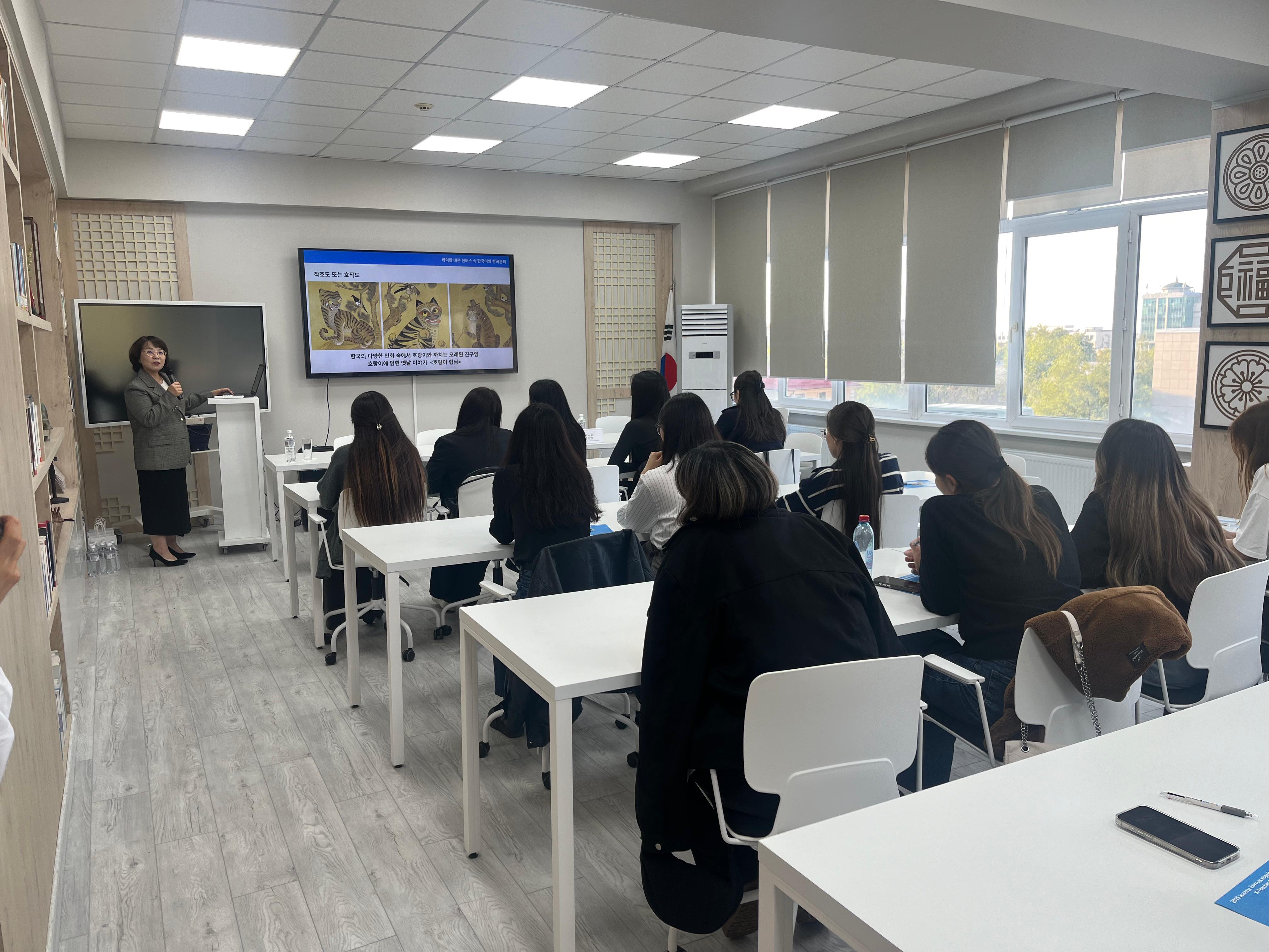 The program featured a meeting with the Dean of the Faculty of Oriental Studies, Mr. Myrzakhan Sharipbayuly Egamberdiyev, and a special lecture on Korean language standards, teaching and assessment methodologies, as well as the application of digital technologies in practical teaching. Approximately 30 undergraduate students took part in the lecture. The final stage of the event concluded with a discussion involving department heads and senior faculty members.