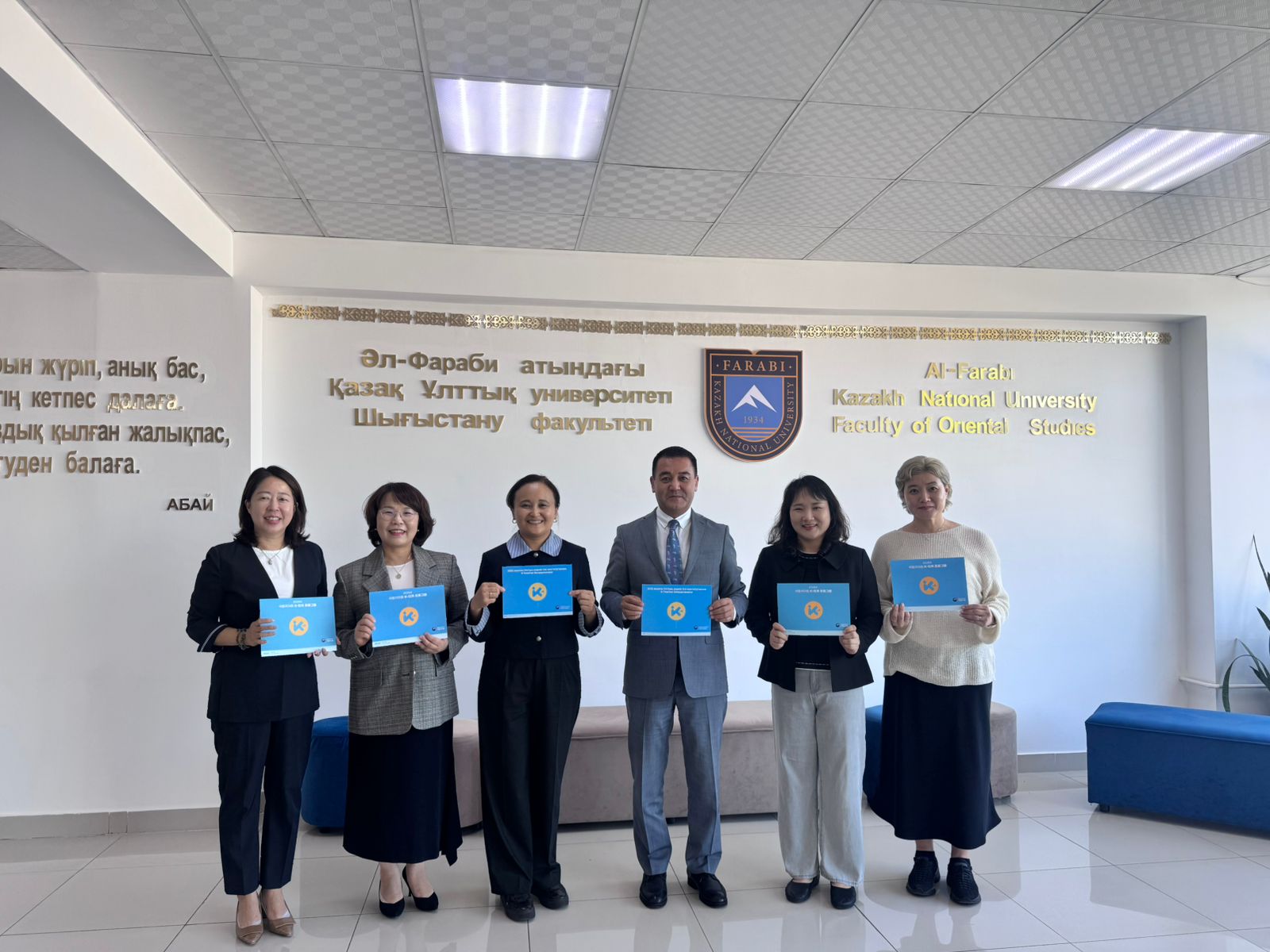 24 сентября 2025 года на факультете востоковедения Казахского национального университета имени аль-Фараби состоялось специализированное мероприятие, организованное кафедрой Дальнего Востока. В мероприятии приняли участие преподаватели факультета Абаган А. Б., Хамитова Н. Е., а также студенты востоковедения. Почётными гостями стали представители Национального института корейского языка, а также профессора из университетов Сангмён и Хонам.