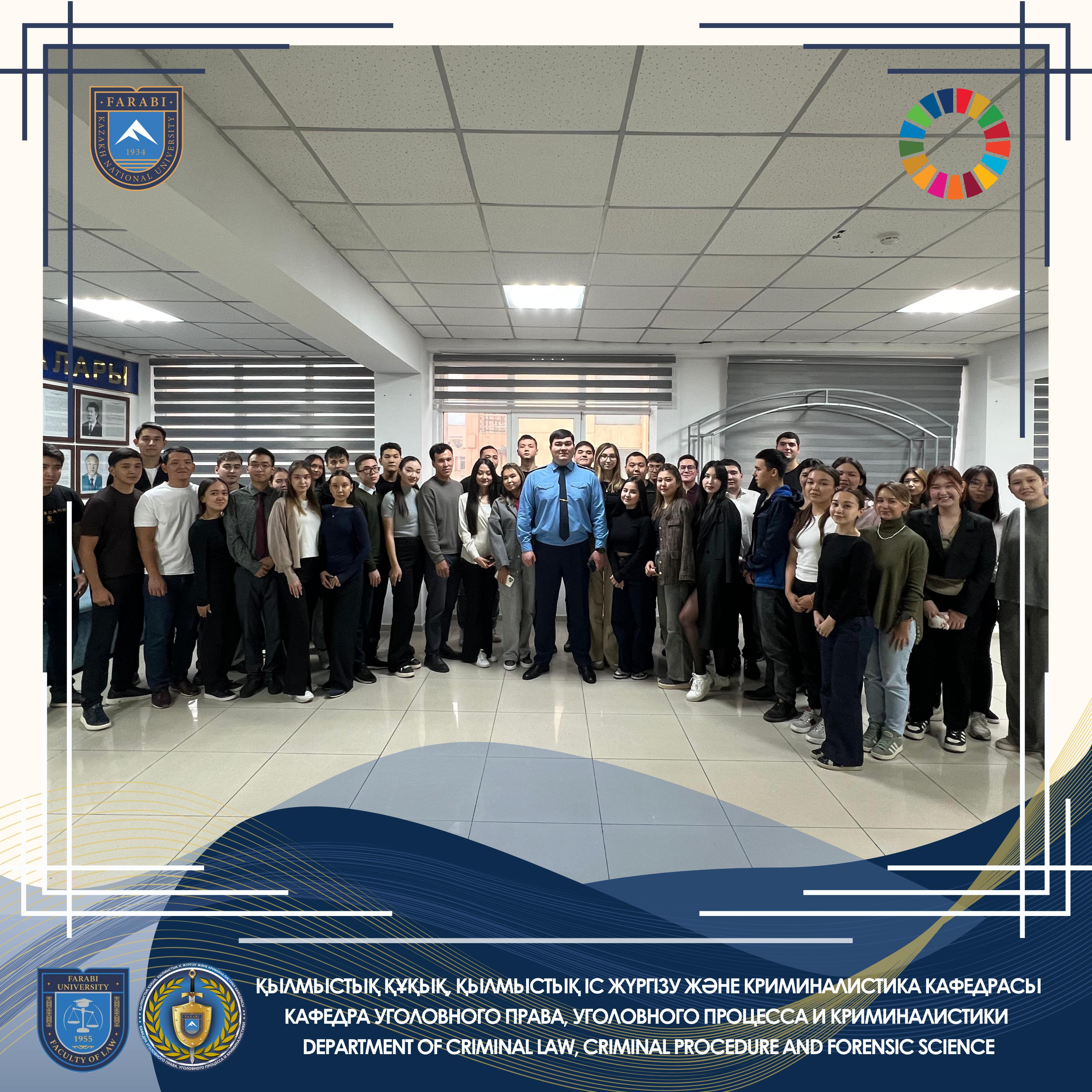 - Сегодня для студентов 3 курса лекцию провёл Сапарбаев Динмухамед Исабаевич, заместитель прокурора Алматинской транспортной прокуратуры.