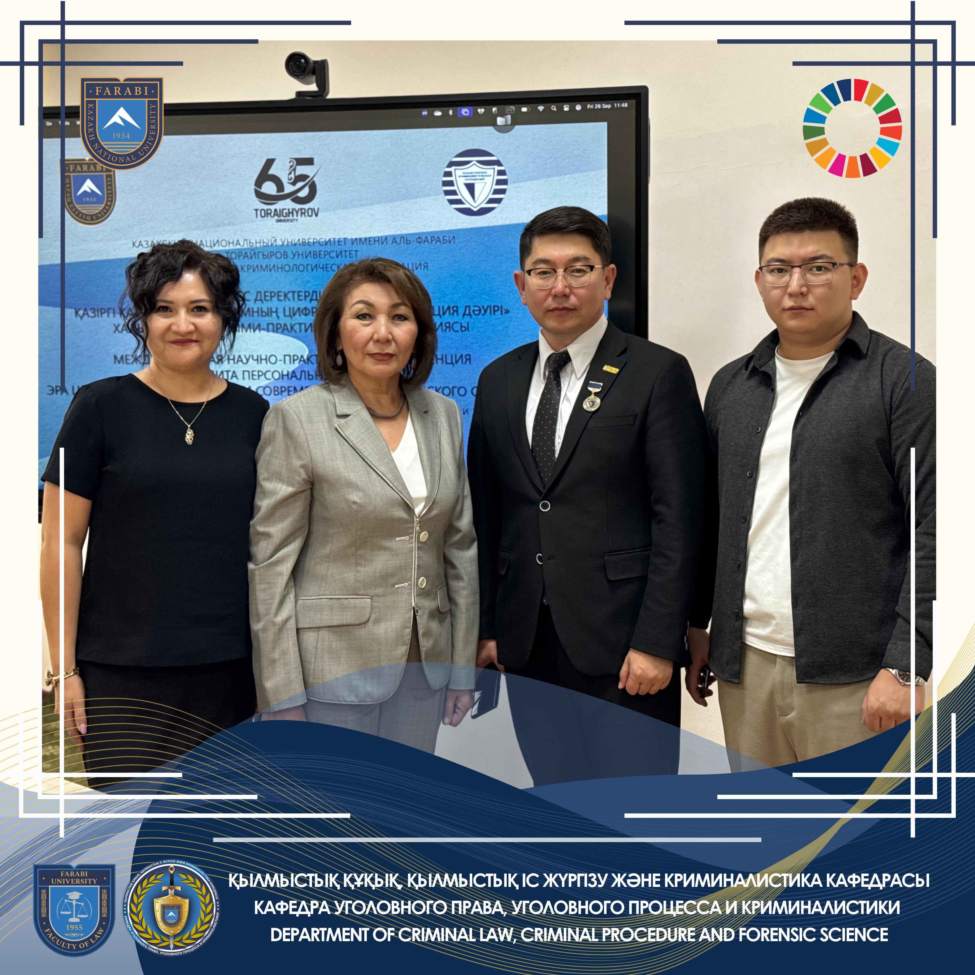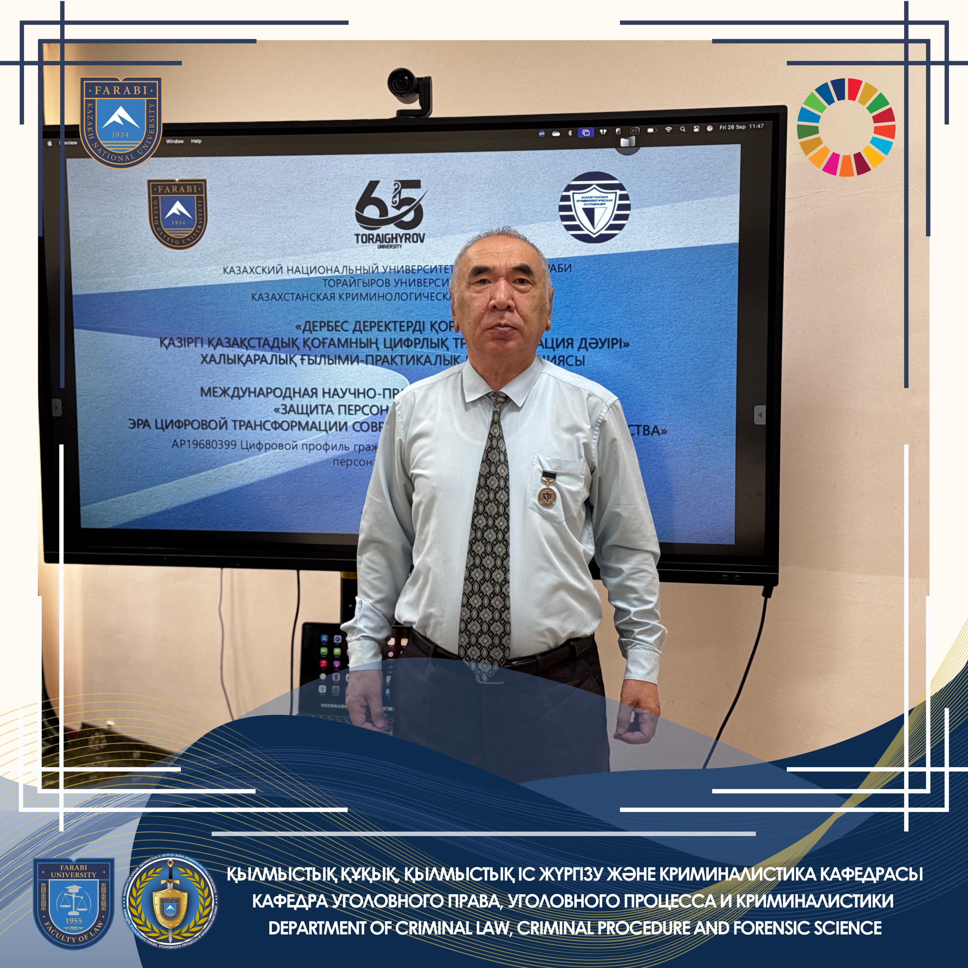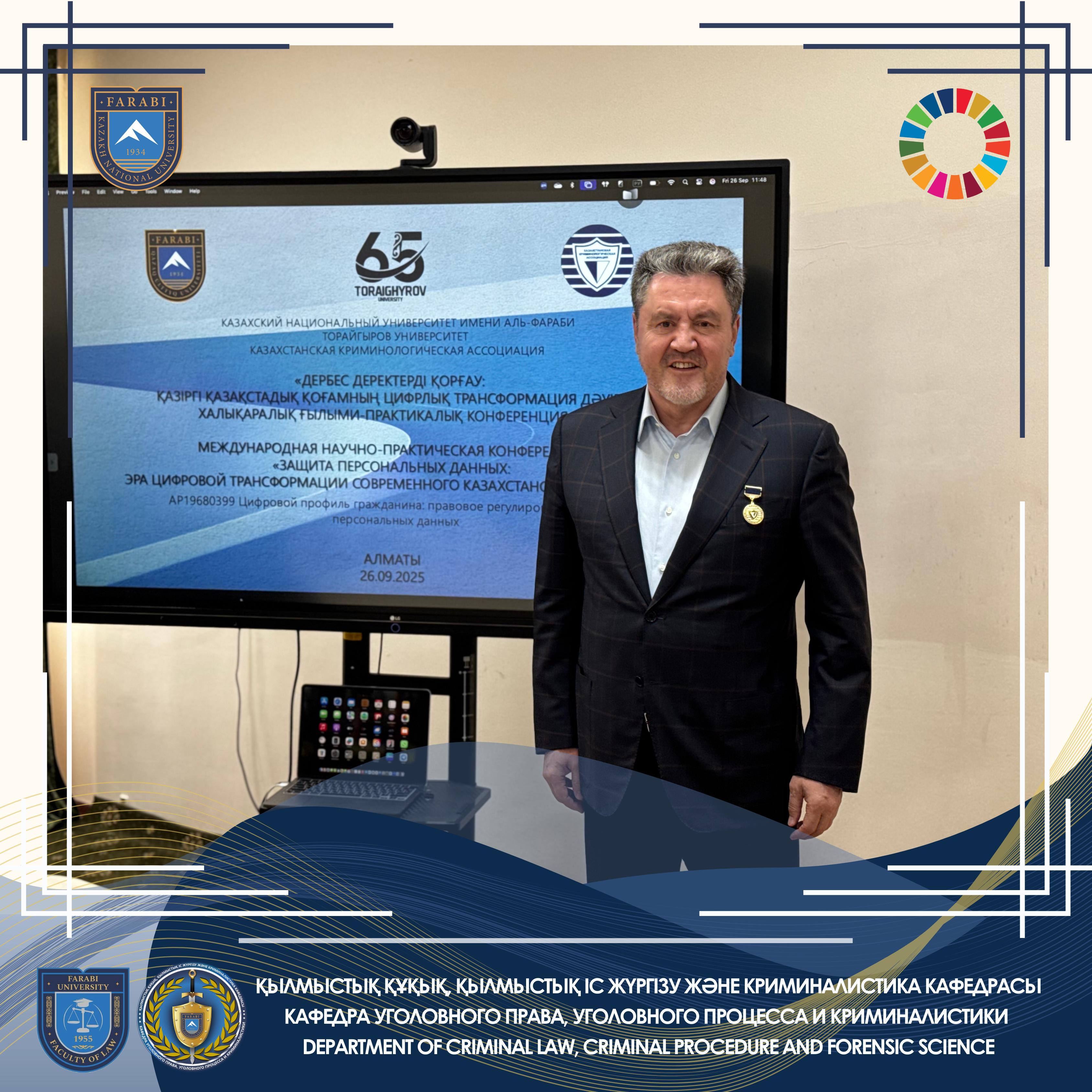On September 26, 2025, during the International Scientific and Practical Conference “Protection of Personal Data: The Era of Digital Transformation of Modern Kazakh Society”, held at the Faculty of Law of Al-Farabi Kazakh National University and jointly organized by the Kazakhstan Criminological Association, Al-Farabi Kazakh National University, and Toraighyrov University, a number of domestic and international scholars who made a significant contribution to the advancement of criminological science and to strengthening international cooperation in this field were awarded the Jubilee Medal.