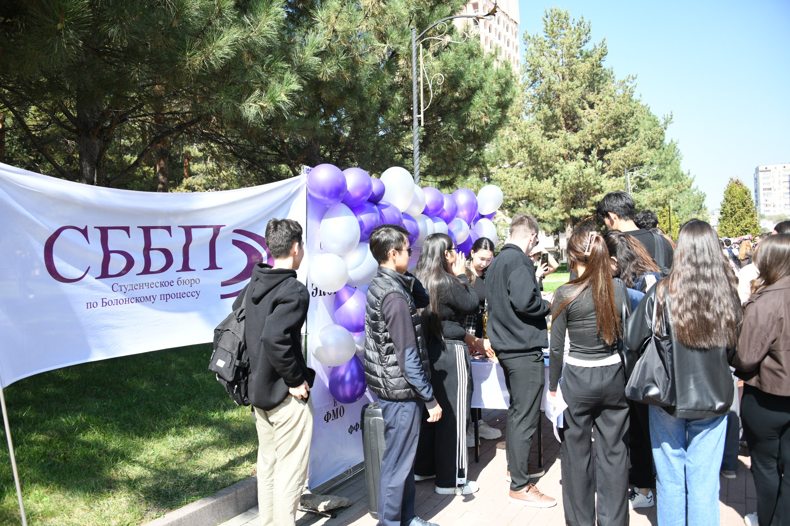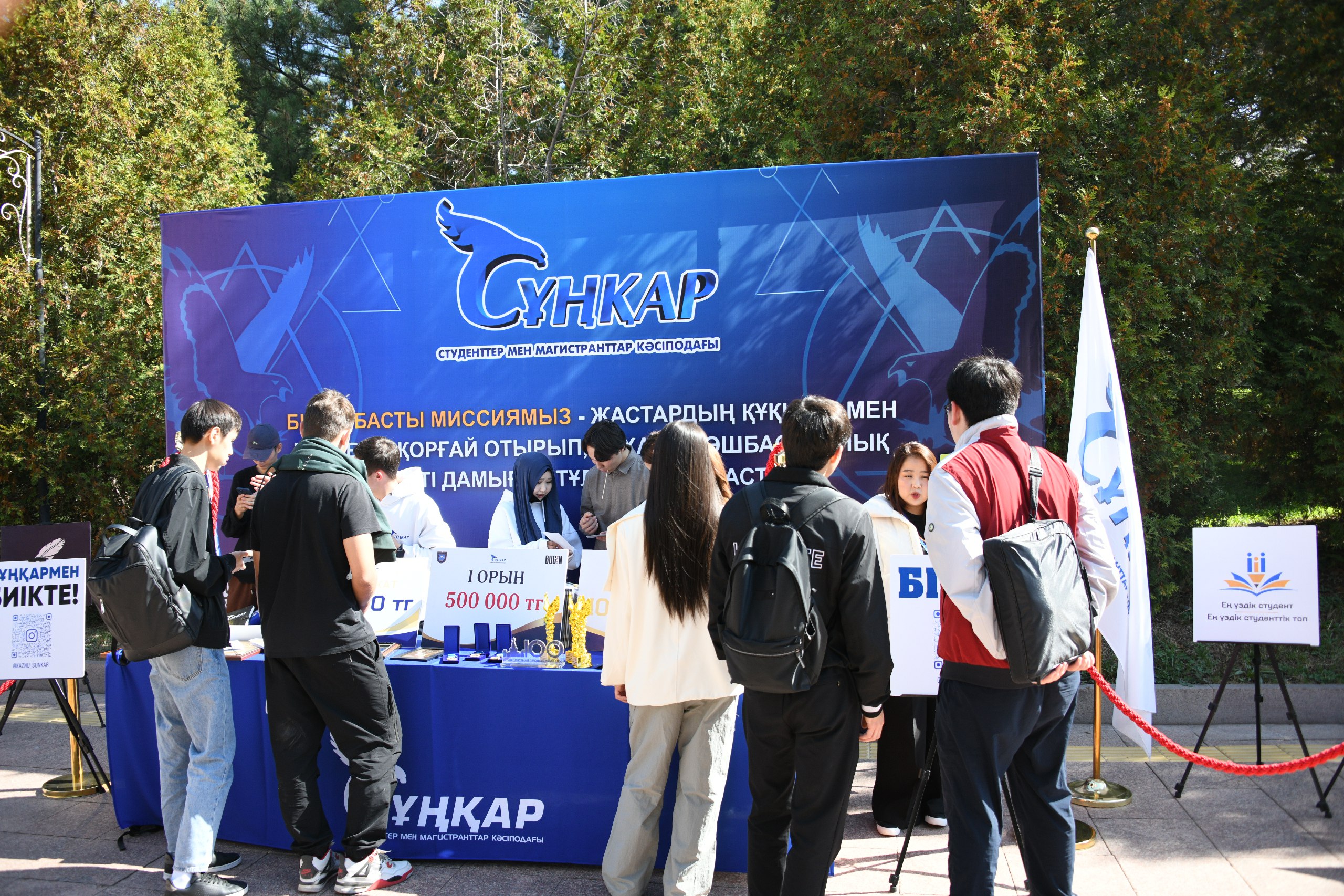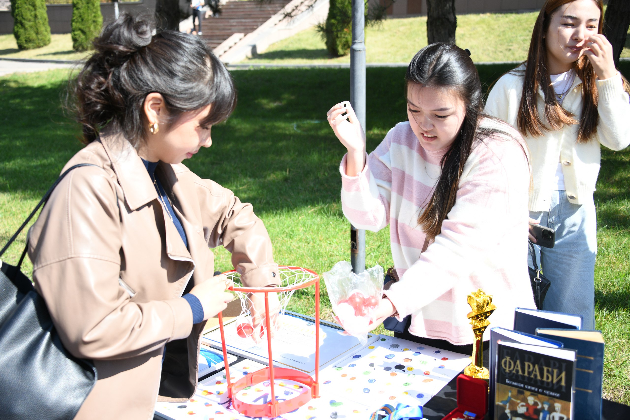 Әл-Фараби атындағы Қазақ ұлттық университетінде студенттердің қоғамдық өміріне қызығушылығын арттыру және оқу ордасындағы түрлі ұйымдардың жұмысын таныстыру мақсатында жәрмеңке ұйымдастырылды.