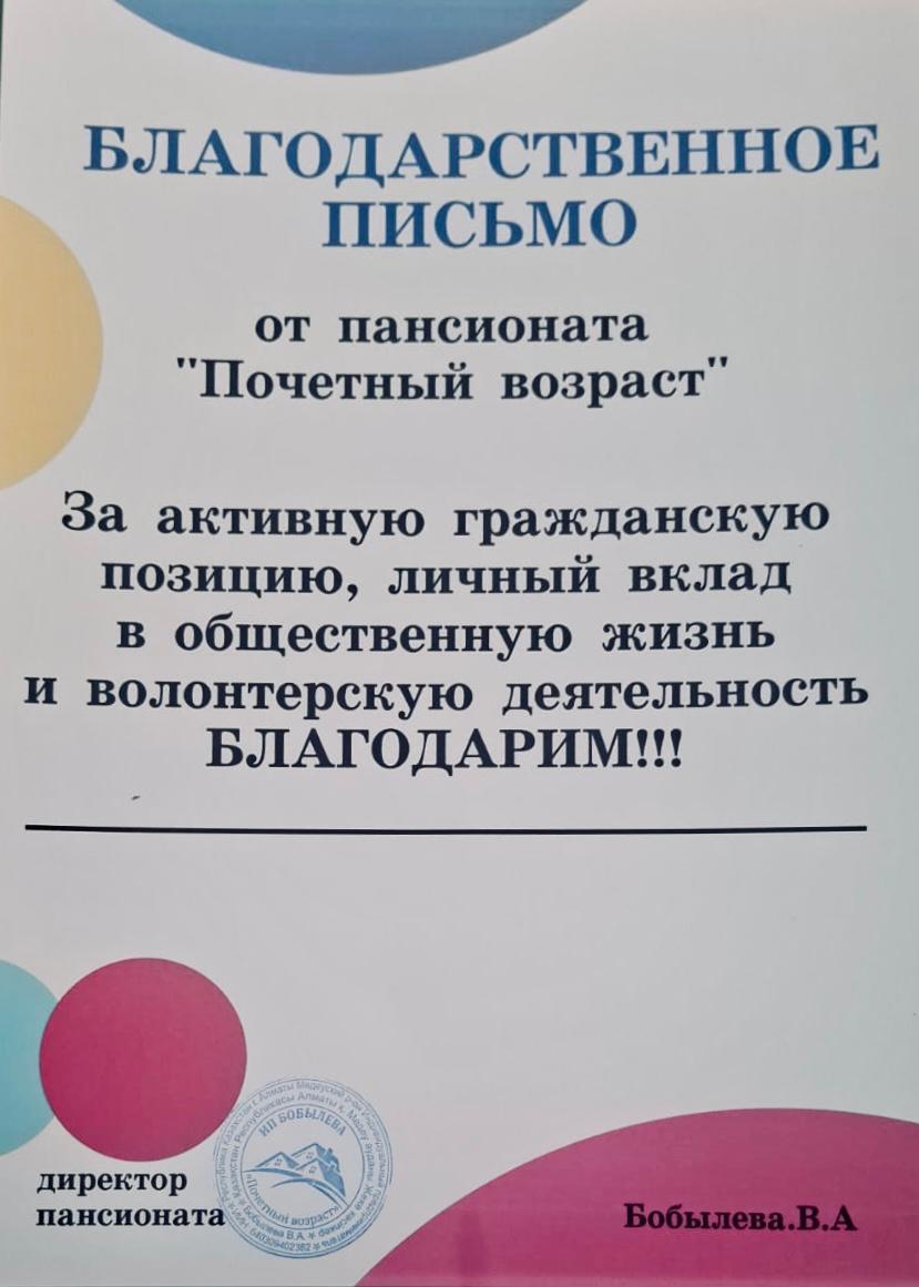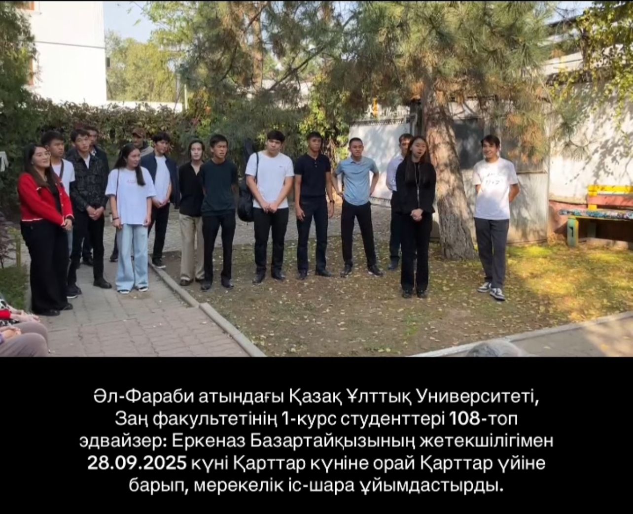 28 сентября 2025 года студенты 108 группы специальности «Юриспруденция» посетили дом престарелых «Почетный возраст» и провели благотворительное мероприятие в честь Дня пожилых людей. Эта инициатива была организована под руководством преподавателя кафедры «Теории и истории государства и права, конституционное и административное право», куратора группы Базартаевой Е.Б.