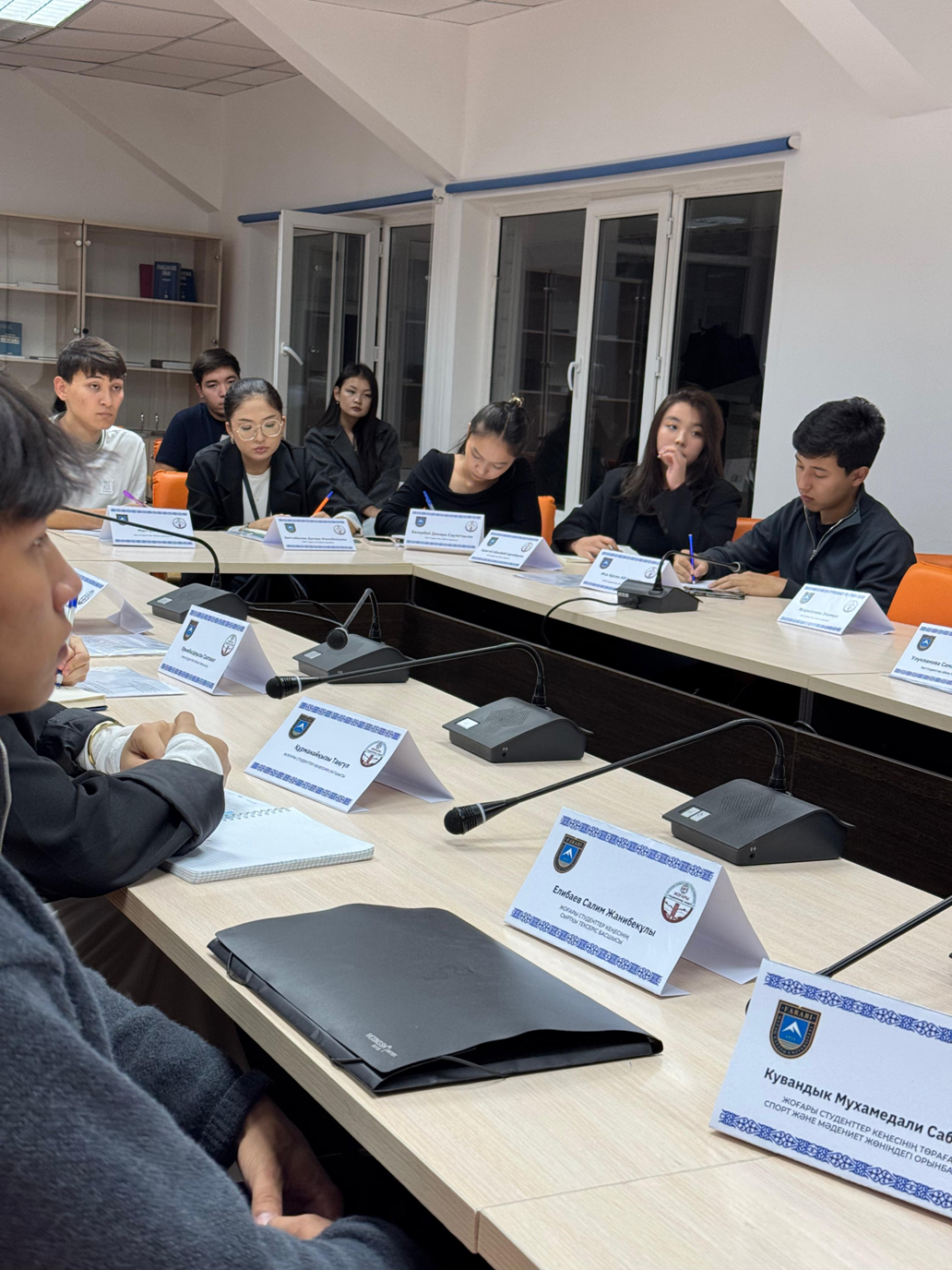 Жиналыс барысында алдағы оқу жылының маңызды жобалары мен іс-шаралары талқыланып, студенттердің құқықтары мен міндеттері, сондай-ақ оқу процесіндегі жауапкершіліктері жан-жақты түсіндірілді. Сонымен қатар, университеттің қоғамдық өміріне белсенді қатысу мүмкіндіктері мен өз бастамаларын жүзеге асыру жолдары қарастырылды. Студенттер арасында ынтымақтастықты нығайту және жауапкершілік деңгейін көтеру мәселелері де сөз болды.