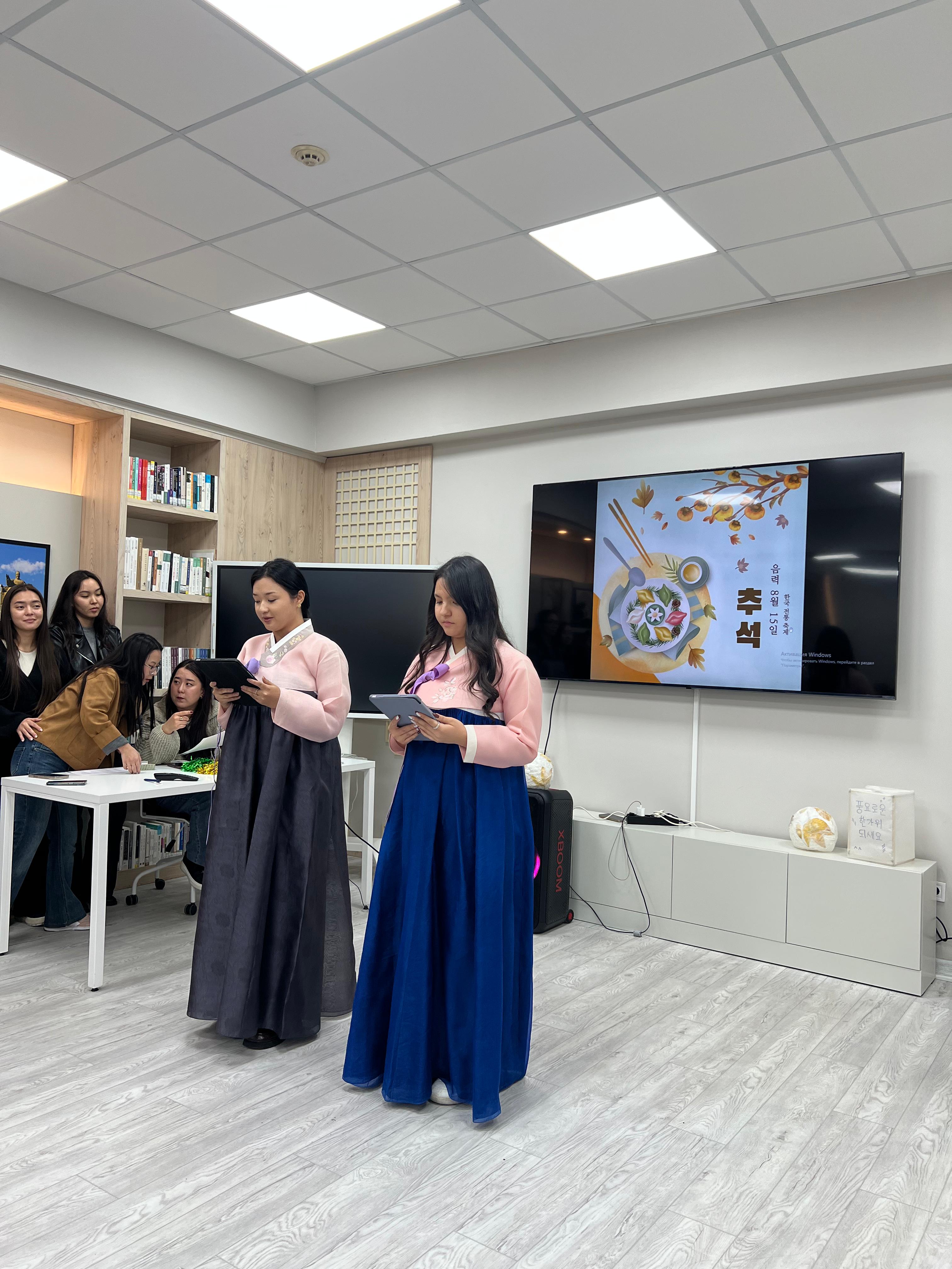 Іс-шара барысында студенттер Чусок мерекесінің тарихы мен мазмұны жайлы баяндама жасап, ұлттық салт-дәстүрлерден көріністер ұсынды. Сонымен қатар, дәстүрлі ойындар ойнатылып, корей халқының ұлттық тағамдары таныстырылды.