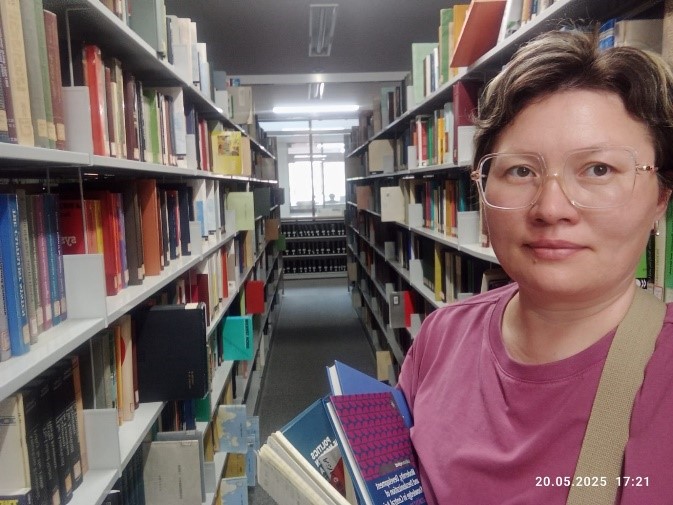 Цукуба университетінің кітапханасынан зерттеу жұмысына қажетті дерек көздерін жинап жатқан сәт