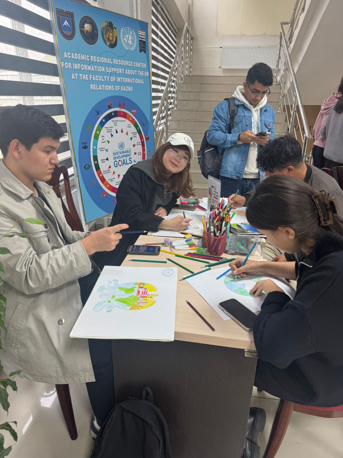 Халықаралық қатынастар факультеті БҰҰ-ның 80 жылдығы мен Халықаралық қатынастар факультетінің 30 жылдығына орай іс-шаралар онкүндігін бастады: Жастар сурет арқылы ТДМ-ға қатысты ойларымен бөлісуде