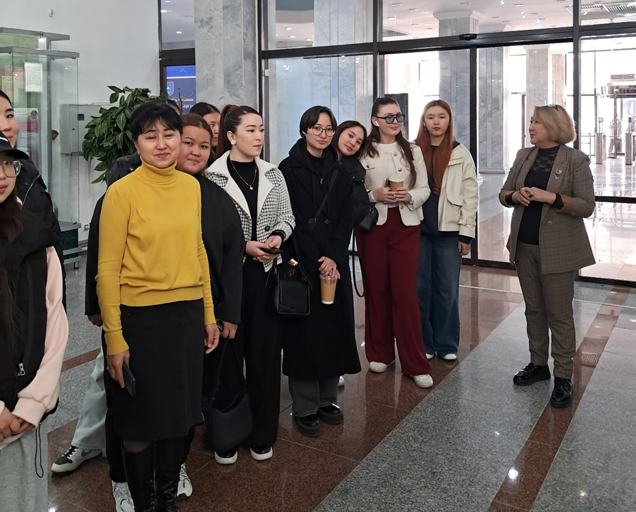 Тарихы терең оқу ордасының даму жолдары мен келешегі кемел жоспарларына қызығушылық танытқан студенттер экскурсияны зор ынталарымен тыңдады