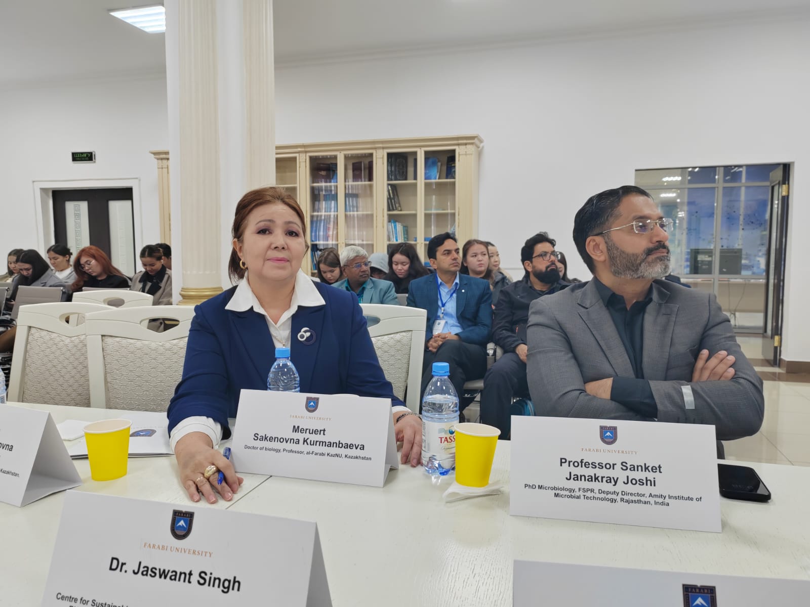 Алматы, 7 қазан 2025 ж. Әл-Фараби атындағы ҚазҰУ-да өткен ICESICS 2025 халықаралық конференциясында Биология және биотехнология факультетінің деканы, б.ғ.д., профессор Курманбаева Меруерт Сәкеновна «Priestia megaterium RFe-2 бактериясының сидерофор өндірісіндегі және тұзды стресс жағдайында бидайдың өсуін ынталандырудағы рөлі» тақырыбында баяндама жасады. Баяндамада RFe-2 штамының PGPR-қасиеттері, тұзданған жағдайда өсімдіктің қоректенуі мен тұрақтылығын күшейту тетіктері және агробиотехнологиялық қолдану мүмкіндіктері жан-жақты таныстырылды.