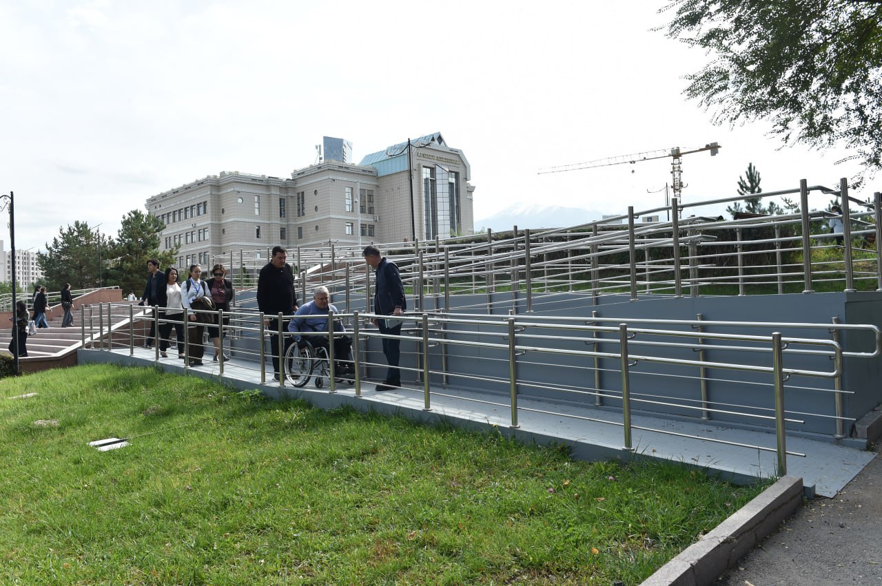 В соответствии с этим по поручению Председателя Правления – Ректора КазНУ Жансеита Туймебаева в городке КазНУ установлены 6 пандусов: перед Центром обслуживания студентов «Керемет», на лестницах, ведущих от главной аллеи к учебным корпусам, около кофейни и столовой, на территории стоянок.