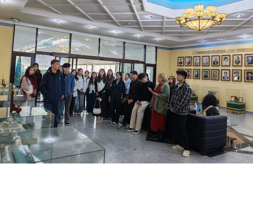 Под руководством старшего преподавателя кафедры и куратора группы Мажикызы Нурлыхан слушатели из Монголии, Китая, Ирана прослушали экскурсию об истории и достижениях нашего университета